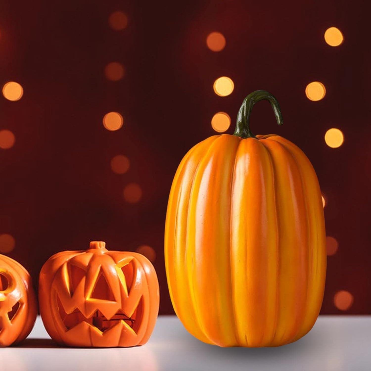 Description: - Resin Material: Resin Crafts Pumpkin Solid for Halloween Warm Fall Decoration. - Bright Colors: Each Artificial Pumpkin has stems curve and emerges from its tops, making them appear to be freshly picked from vine. - Occasion: These pumpkins are perfect for fall themed party, Halloween, harvest Thanksgiving party decor, or Christmas decorations. - Widely Used: Also perfect for bedroom, kitchen, dining room, tables, counters, baskets, fences, shops, etc. which can bring with festival feels . - Perfect Gift: Perfect as Thanksgiving gift, fall gift, autumn gift, Halloween gift for your family and friend, both adults and kids love these adorable pumpkins. Specification: - Material: Resin Package Includes: 1 Resin Pumpkin Note: Please allow slightly errors due to manual measurement and different monitors.