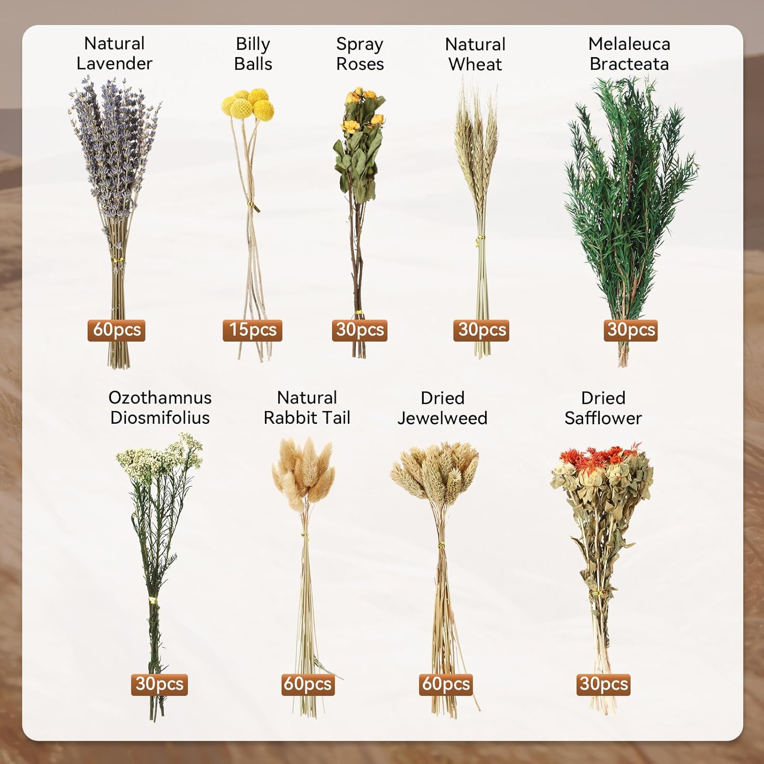Features: Our mixed dried flowers set offers many types and vibrant colors ideal for diverse DIY projects like resin crafts epoxy jewelry hair accessories candles and glass dome displays These dried flowers are made from naturally fragrant lavender and eucalyptus leaves They maintain their beauty for months through special processing Ideal for rustic home decor Specifications: Material: dried flowers Color: multicolor Package includes: 345 x Dried flowers Notes: Manual measurement, please allow slight errors on size. The color may exist a slight difference due to different screen displays