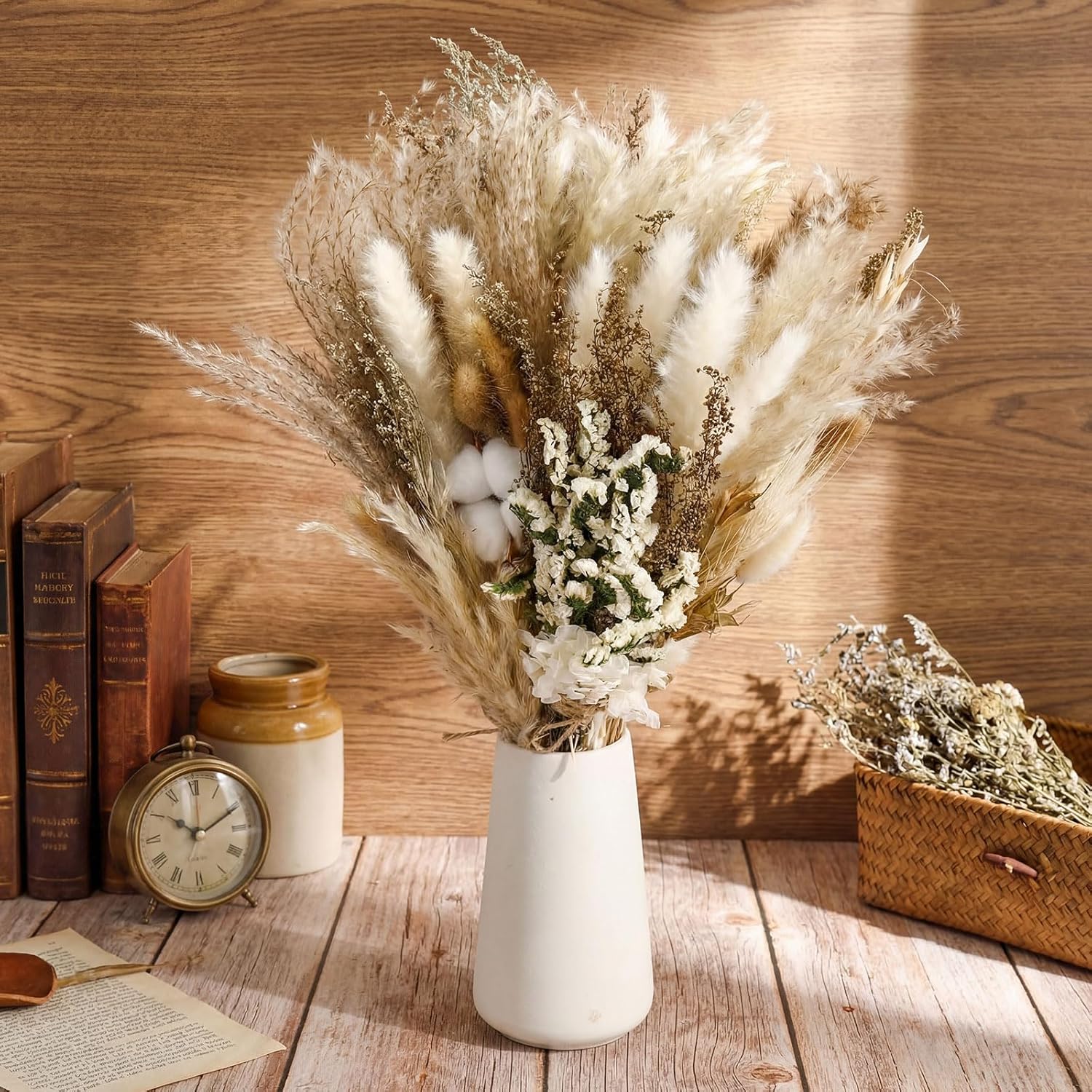 Features: Earnest craftsmanship: These large bouquet flowers are prepared using only the natural dried flowers and plants. They have no unpleasant odors and things, are safe and reliable to use. This collection suits different people's tastes, making your Bohemian wedding or home decoration project more lively and refreshing. Note: you can use a hair dryer for about 5 minutes to get a full flower Complete package: Each pack includes 8 pack large dry flower bundles. These ready to use dried flower bundles offer an effortless way to elevate your home decoration or celebratory events while saving you time and effort. Specifications: Material: flowers and plants Color: colorful Size: about 15-17 inches Package includes: 8 x Large dry flower bundle Notes: Manual measurement, please allow slight errors on size. The color may exist a slight difference due to different screen displays. Swallowing risk may exist, please stay away from little kids