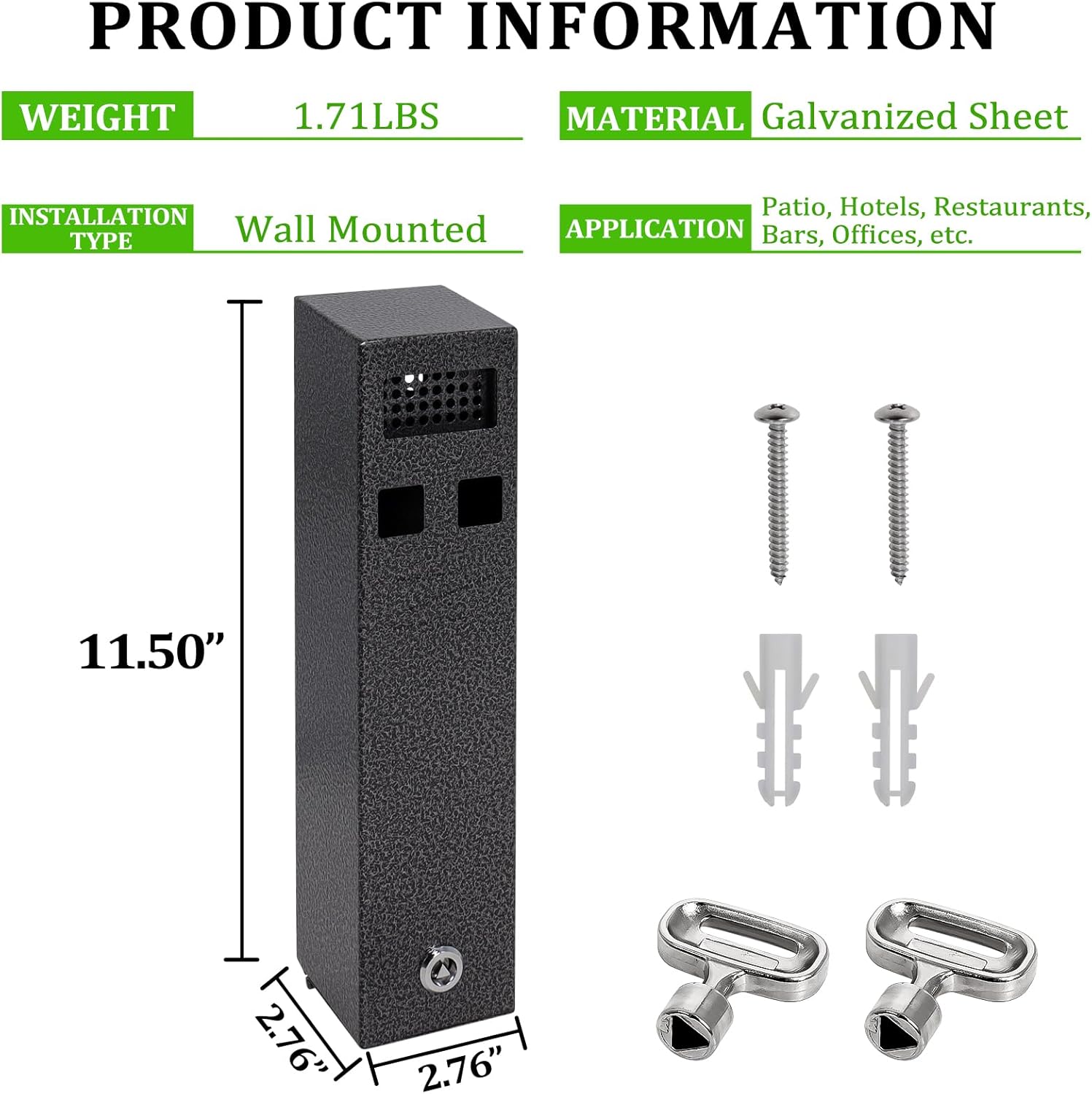 | Item Dimensions L x W x H | 2.76"L x 2.76"W x 11.5"H |