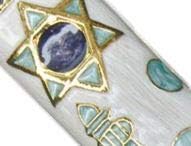 This Mezuzah makes an excellent gift idea for the peaceful and tranquil home. This mezuzah has a beautifully made design and is a comforting item that is also quite attractive. It is a real pleasure to have on the doorpost of your home or to give as a truly special Judaica gift. "Baruch Ata Ad-onay E-loheinu Melech Ha-olam Asher Kiddeshanu Be-mitzvotav Vetzivanu Likboa Mezuzah." "Blessed are You G-d, Our G-d, King of the universe who has sanctified us with his commandments, and has commanded us to affix a mezuzah." The Jewish mitzvah to place a mezuzah on the doorpost of the home comes from Deut. 6:4-9, a well known passage commonly referred to as the Shema. In that passage, G-d commands us to keep His words constantly in our minds and in our hearts by writing them on the doorposts of our home.This refined and intricate mezuzah case has an elegant appearance which is a spectacular decoration for the doorpost of any Jewish home. Clear jeweled accents enhance this beautiful enameled metal mezuzah cover. The jeweled look of this mezuzah case adds a classy touch to any room. Scroll size is 12cm. Actual case will be larger. Scroll NOT included. Mezuzah case has an open back. Material: Enameled Metal Color: Blue/beige/green/gold Scroll Size: 12cm / 5" Case Size: 6.5" Blue gift box.