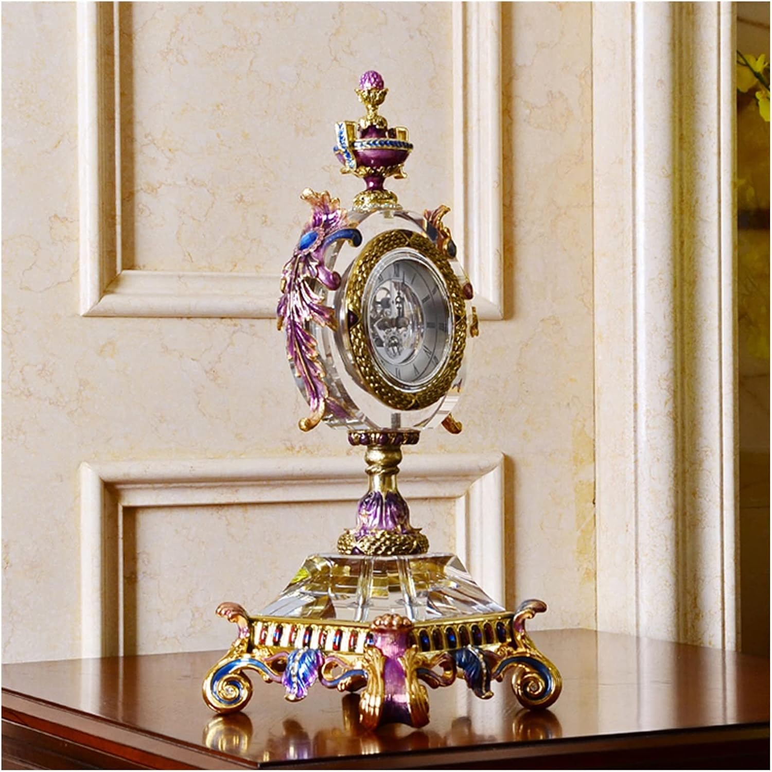 Unique exterior design makes it match with most furnitureCrystal Glass Table Clock Home Decoration Living Room Decoration Clock Gift ClockProduct name: Household table clockMaterial: CrystalColor as shownHands: Metalstyle: noblePower BatteryMirror material: glassApplicable: living room, bedroom, studyPackage: 1 x desk clock (battery not included)notes1 Please check the size and color before purchasing.2 Excludes items other than those shown in product photos.3 Please note that due to different monitors, there may be slight color difference, please understand.4. The above data is for reference only, the size is measured manually, each variable may be different, please refer to the actual product, thank you.5. If you find any problem with our products, please feel free to contact us by email, we will solve the problem as soon as possible.6. Your sharing and feedback are welcome so that we can provide you with better products and services.7. Thank you for visiting my store, click to enter my store, there will be many products for your reference