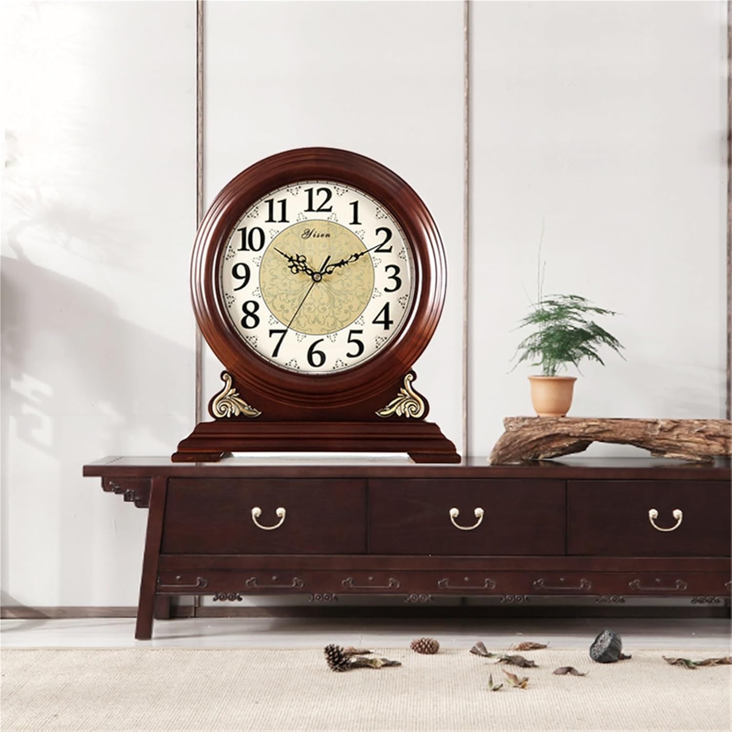 Practical size and easy placement: Its moderate size allows it to sit securely on any flat surface, bookshelf, or fireplace mantel, making it an ideal desktop or tabletop decorative piece.Specifications:Casing Material: WoodPackage Included:1 x Desk Clock (Battery Not Included)Warm Reminder: This product only contains a desk clock without batteries. It is recommended to use carbon batteries do not use alkaline batteries.Provides accurate and stable timekeeping: Combining performance and durability, it ensures every second counts in your home.Artistic collection: More than just a timekeeping tool, it's a practical piece of home art, making it a precious gift for moving into a new home, celebrating a wedding, or as a present for elders and close friends.