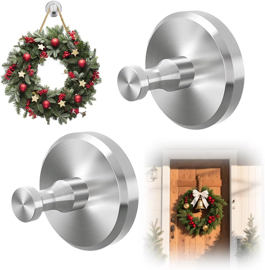 Suction Cup Hooks for Wreaths on Glass, 2025 New No Drill Suction Cup Wreath Hanger, Waterproof Suction Cup Wreath Holder Towel Hooks for Window Bathroom Mirrors Shower Specifications: Color: Black, Silver, Gold Product size: as shown Package includes: 2/4 pcs x Suction Cup Hooks