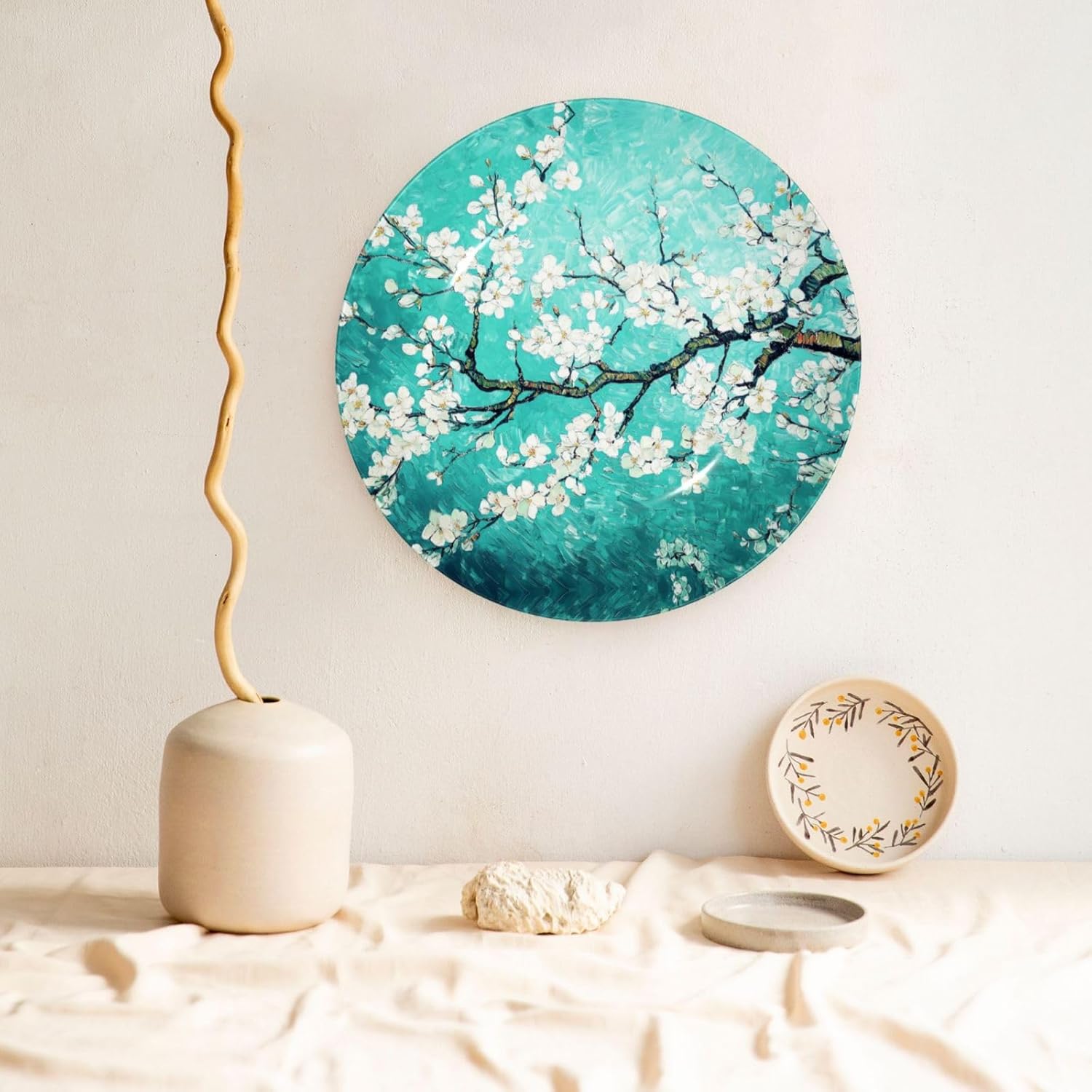 Country Style Decorative Ceramic Plate - A Charming Addition to Your HomeThis turquoise Almond Blossoms style decorative ceramic plate is an absolute must - have for those who love to add a touch of rustic charm to their living spaces.Key Features:Exquisite Design: The turquoise Almond Blossoms plate showcases a beautiful country - inspired design. It features typical of a countryside aesthetic. This makes it not just a plate, but a work of art that can be displayed on a wall, on a plate stand in the dining room, or even on a side table in the living room.