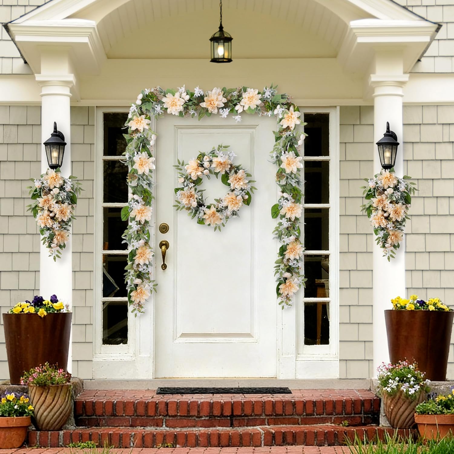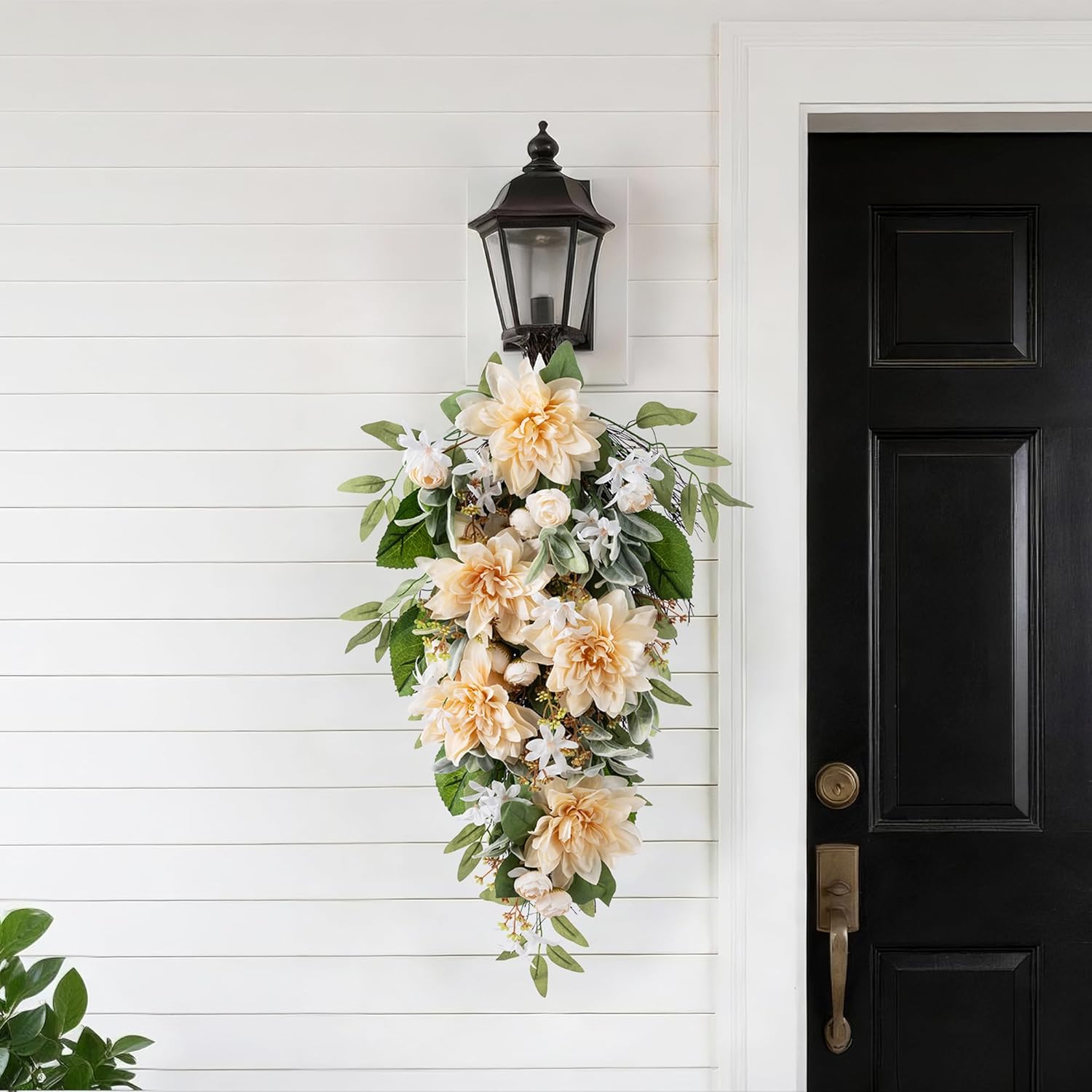 Specifications:Material: 50% Rattan, 20% Plastic, 30% FabricOverall Dimension: 16"L x 5"W x 28"HWeight: 0.99lbsColor info: As PictureTheme: Home Decor Occasions: Indoor & OutdoorNo Assembly RequiredFeatures: Add a touch of graceful elegance to your home with the Glitzhome Peach Dahlia Floral Teardrop. This stunning 28-inch piece features a distinctive teardrop shape lavishly decorated with lifelike peach dahlias, complementary blooms, and lush greenery. Perfect for making a statement, it effortlessly enhances your front door with a warm welcome or serves as a beautiful accent on any indoor wall. Designed to capture the fresh spirit of spring and summer, this handcrafted decor item requires no assembly—just hang it and enjoy the instant uplift of sophisticated, natural charm it brings to your porch, patio, or living space.Packge includes: 28"H Peach Dahlia Floral Teardrop * 1