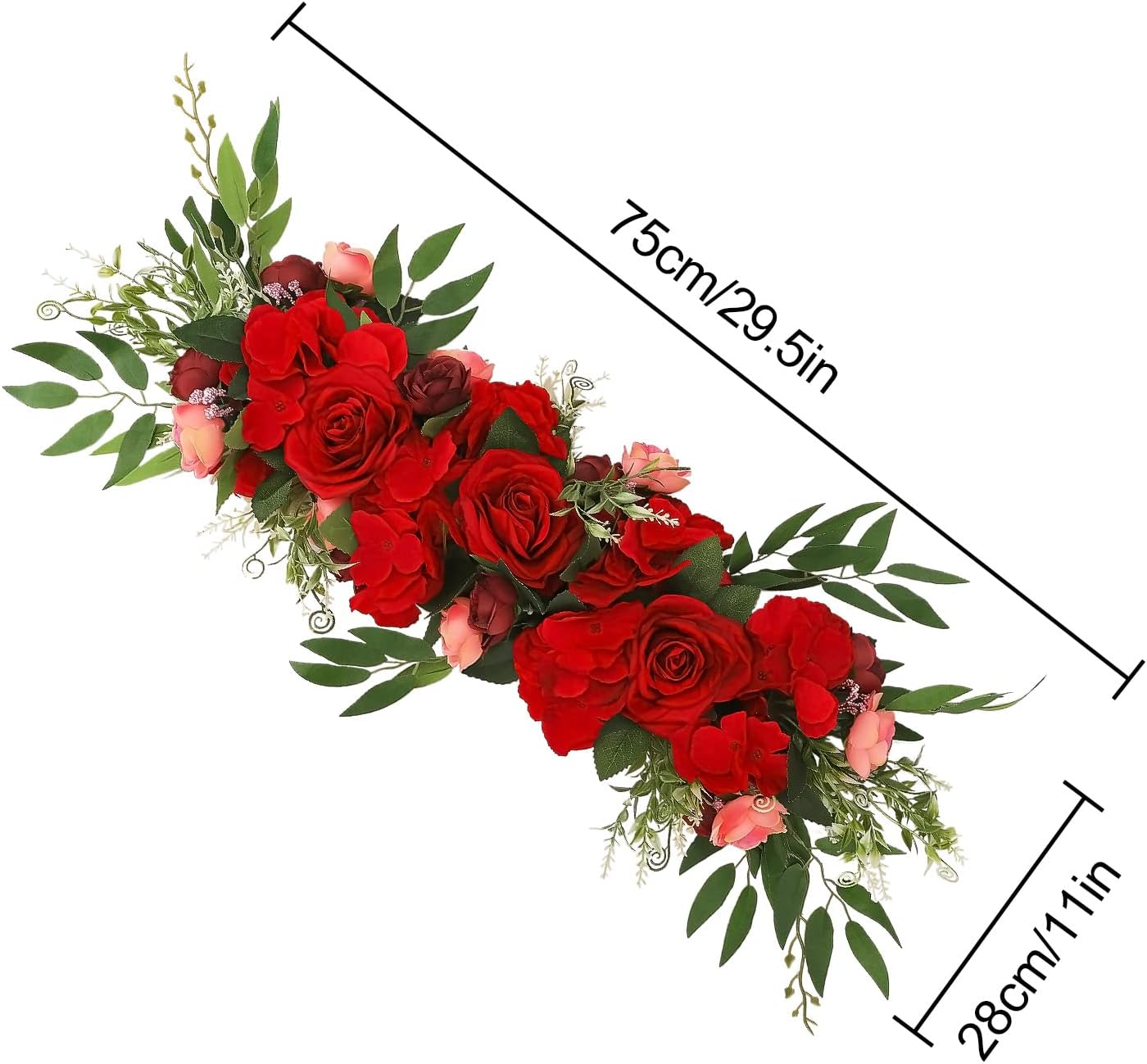 Features: REAL TOUCH. Nearly nature form suit for spring and summer door decoration. If you are looking for that special flower swag to embellish your home or event decor, this is the wreath for you! EASY TO MAINTAIN: No hassles with needle clean up or maintenance required. This vibrant greenery swag includes ultraviolet protection to prevent fading and will look great all year around. WIDE USAGES: Ideal for decorating weddings, stages, living rooms, bedrooms, offices, dining rooms, birthdays, farmhouses, etc, it can be used indoors or outdoors, making it a versatile decorative accessory that hangs over the fireplace and over the front door. Specification Material: Plastic, Cloth Size: 65 x 16cm Package Includes:1 x Artificial Flower Swag