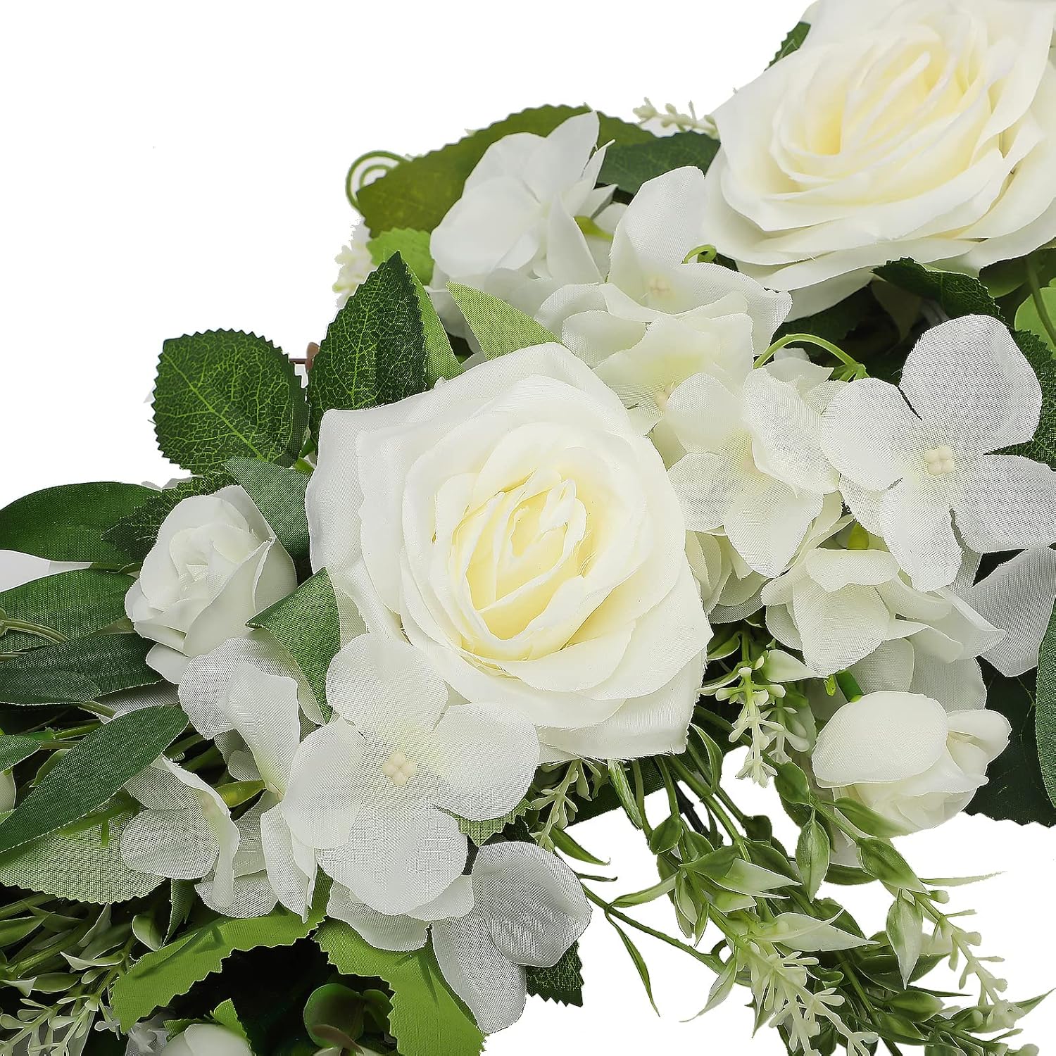 Features: REAL TOUCH. Nearly nature form suit for spring and summer door decoration. If you are looking for that special flower swag to embellish your home or event decor, this is the wreath for you! EASY TO MAINTAIN: No hassles with needle clean up or maintenance required. This vibrant greenery swag includes ultraviolet protection to prevent fading and will look great all year around. WIDE USAGES: Ideal for decorating weddings, stages, living rooms, bedrooms, offices, dining rooms, birthdays, farmhouses, etc, it can be used indoors or outdoors, making it a versatile decorative accessory that hangs over the fireplace and over the front door. Specification Material: Plastic, Cloth Size: 65 x 16cm Package Includes:1 x Artificial Flower Swag