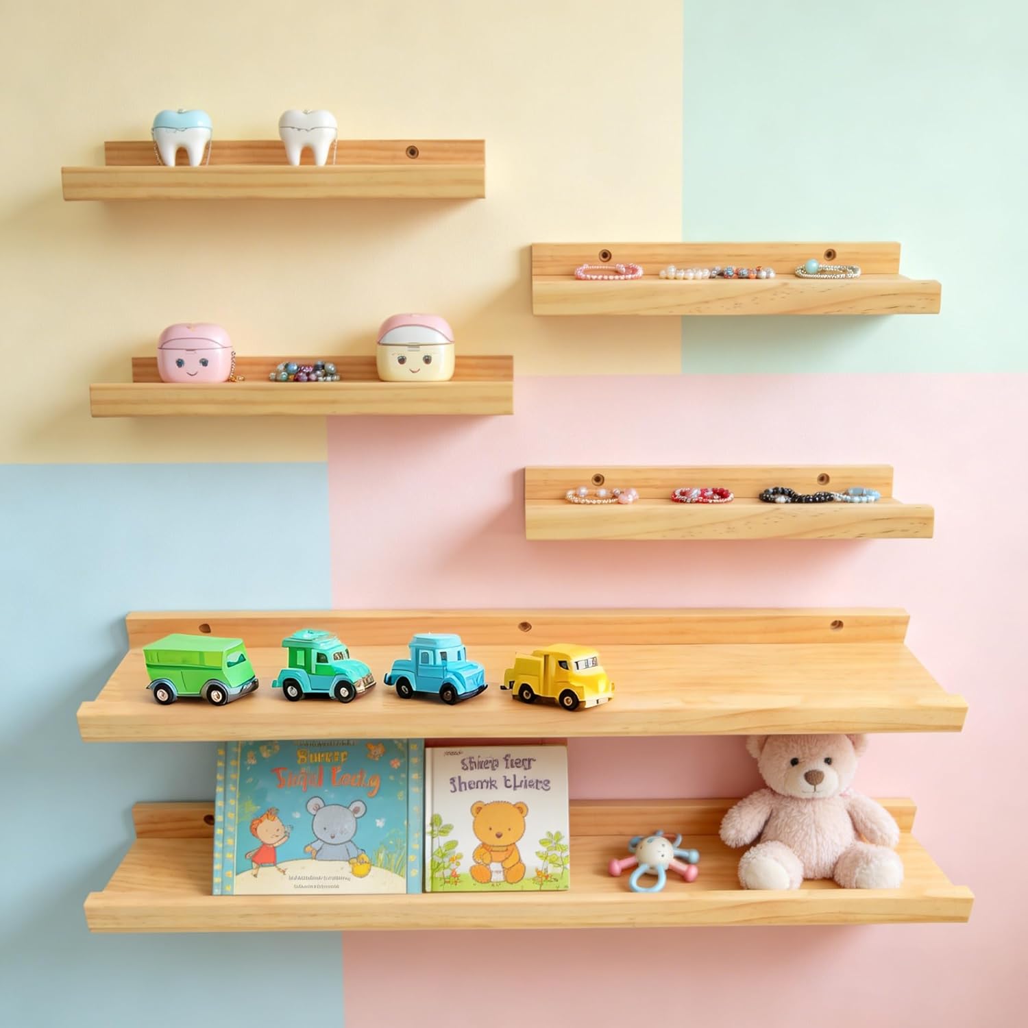 Floating Shelves for Wall Decor Storage, wood,Wall Shelves Set of 6, Wall Mounted Wood Shelves for Bedroom, Living Room, Bathroom, Kitchen, Small Picture Ledge Shelves,