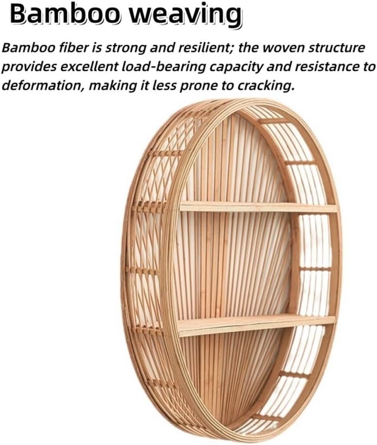 Size: Length: 51cm (20.1in)Width: 13cm (5.1in)Height: 51cm (20.1in)Is Assembly Required:NoEnhance your home with this beautifully crafted bamboo round floating shelf, designed to combine natural grace with practical functionality. Featuring a distinctive circular frame and delicate handwoven rattan accents, it introduces a touch of boho charm that complements both modern and traditional interiors. The natural bamboo texture adds warmth to any space, creating a visually appealing focal point on your wall.Built with two tiers, the shelf offers generous space for displaying your favorite décor—whether it's small plants, collectibles, candles, or framed photos. Its lightweight yet sturdy bamboo structure ensures stability without adding unnecessary weight, making it an excellent choice for apartments, studios, and compact living environments.Reminder:1.Other items on the product are for display only and are not included in the product.2.As the product is measured manually, please refer to the actual product, thank you for your understanding.3.Due to different monitors, there will be a certain color difference in the product, please refer to the actual product.