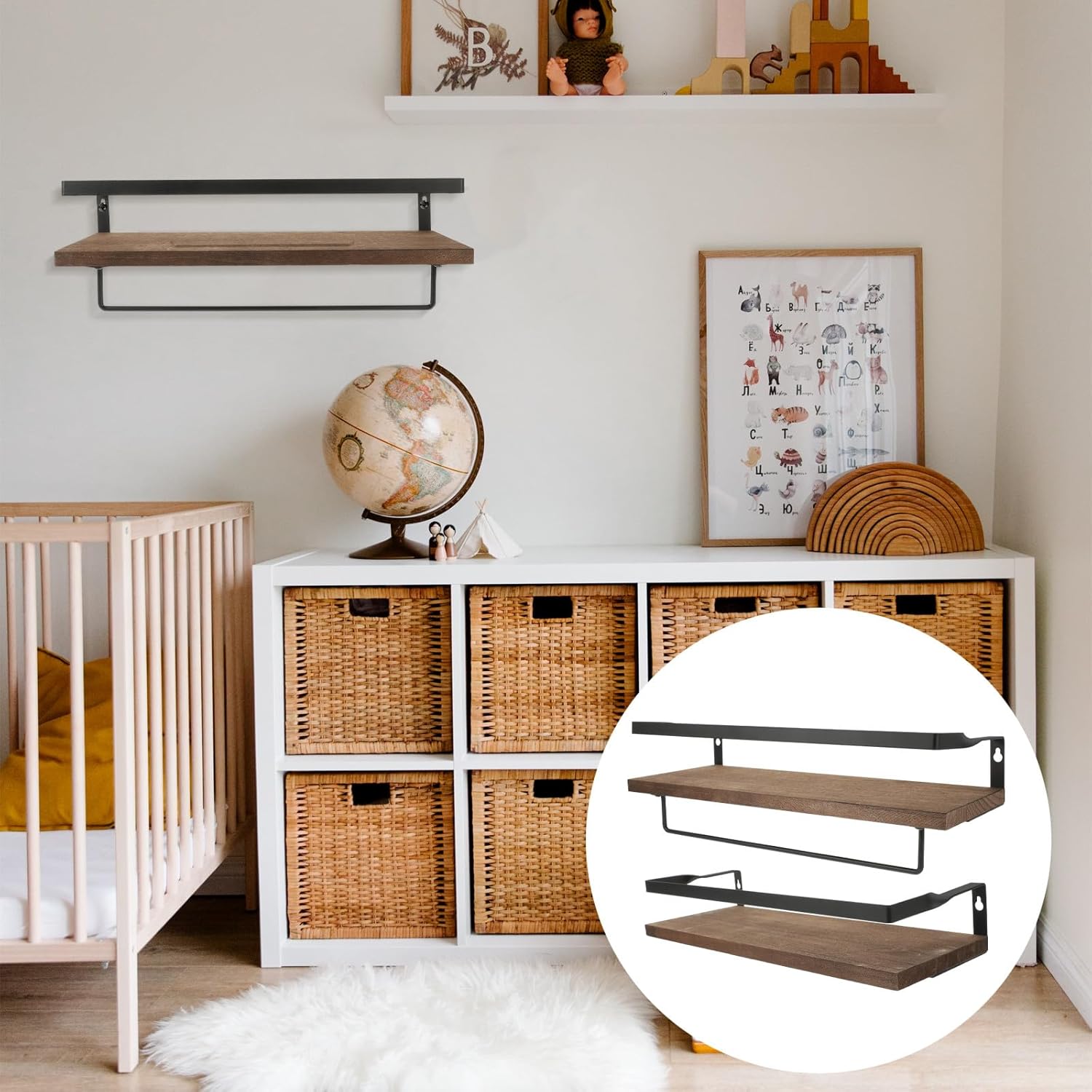 Package List 2 × Floating Shelves Characteristics -Product Info:Wall-mounted partition rack -Size:40.00X15.00X13.00cm/15.72X5.89X5.11in (with towel bar) -Material:Metal and wood -Color: Assorted Color. - Its simple and classic appearance can match most home decor styles, help to add more textured atmosphere Wall Mounted Storage Rack. - Wide uses, work great for holding security camera, speakers, small decor, small plants, etc wall hanging shelves. - This floating wall shelf can not only add more space for storage, but also can be used as a wall decor Wall Storage Shelf. - Wall shelf is made of safe material, and sturdy for use. Fine workmanship ensures its practicality. - Excellent workmanship, give maximum attention to every detail to give it a stylish and appealing look Wall-mounted Floating Shelf.Goods Descriptionwall mount floating shelf Perfect for kitchen, laundry, bathroom, garage or craft room.wall mounted display rack A great choice for your friends and family on housewarming, Christmas, and other special occasions.wall mount shelves Perfect for adding extra vertical space to bedroom, kitchen, home office, small apartment, college dorm, coffee bar, etc.Wall-mounted Floating Shelf This floating shelf makes your room look spacious, and it will surely add some charm to your space