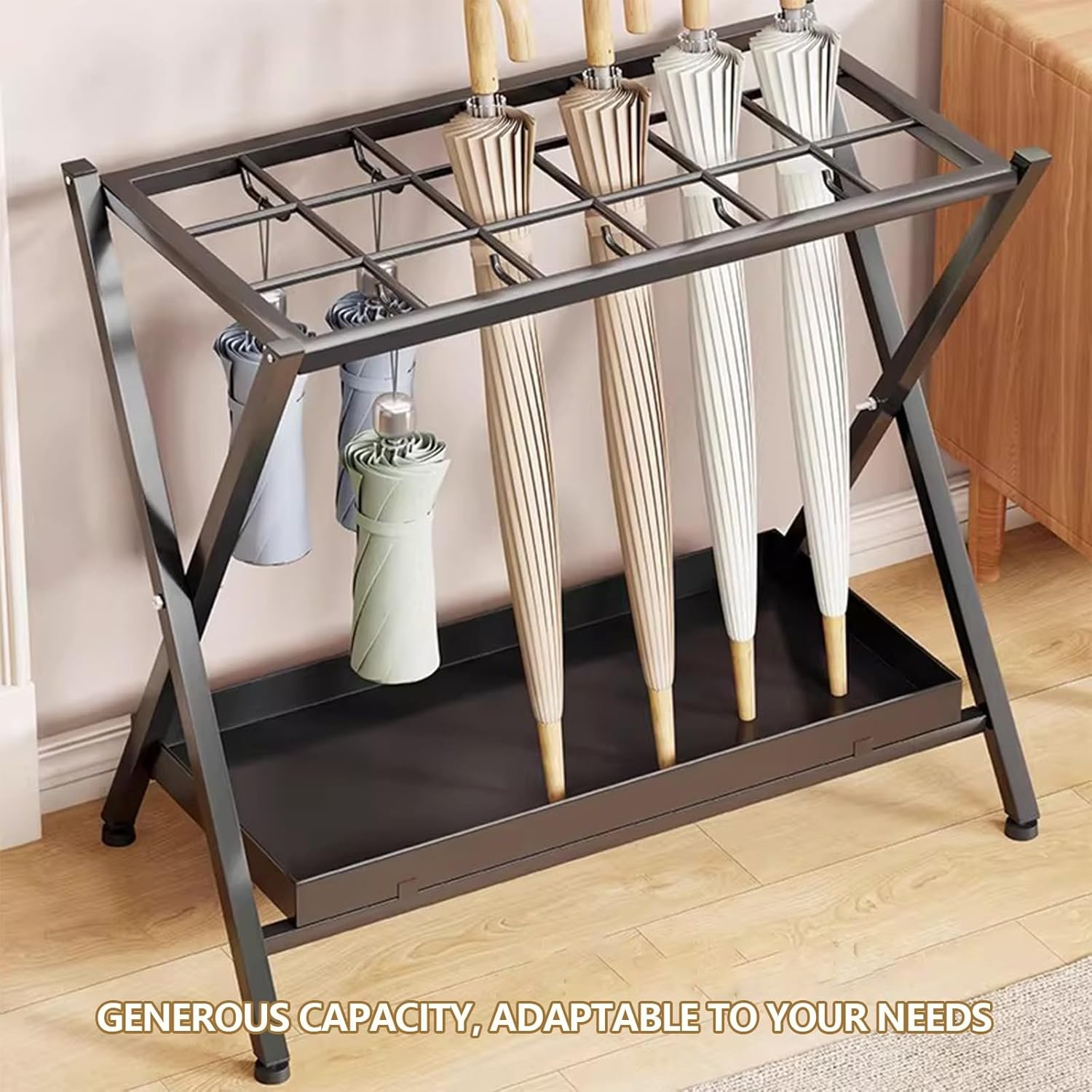 umbrella stand,This is made of metal, giving it a solid build that can hold multiple umbrellas. The design features a large open area where you can easily store umbrellas. Compact and vertical structure makes it ideal for spaces where room is limited. You can place it in a corner or against a wall without it taking up too much floor space. This umbrella rack is easy for installation.It is a nice choice for daily life. Product Specifications: Product Name: for Entryway, Umbrella Holder for Home, Hotel Lobby, Commercial Use, Rain Umbrella Storage Rack Material: Metal Colors: Black , White Size: 53x28x56CM/20.8x11x22inch Suitable Scenes: Living Room, Bedroom, Study, Office, Entryway, Mall, Shop, Flower Shop, etc Notes: 1. We only sell umbrella holder, other pictures are not included. Please check the size and color before buying. 2. All sizes are measured manually, there may be an error of 1-3 cm. Please refer to the actual product. 3. Due to photography lighting or your screen setting, product colors may appear slightly different, Please refer to the actual product for accurate color.