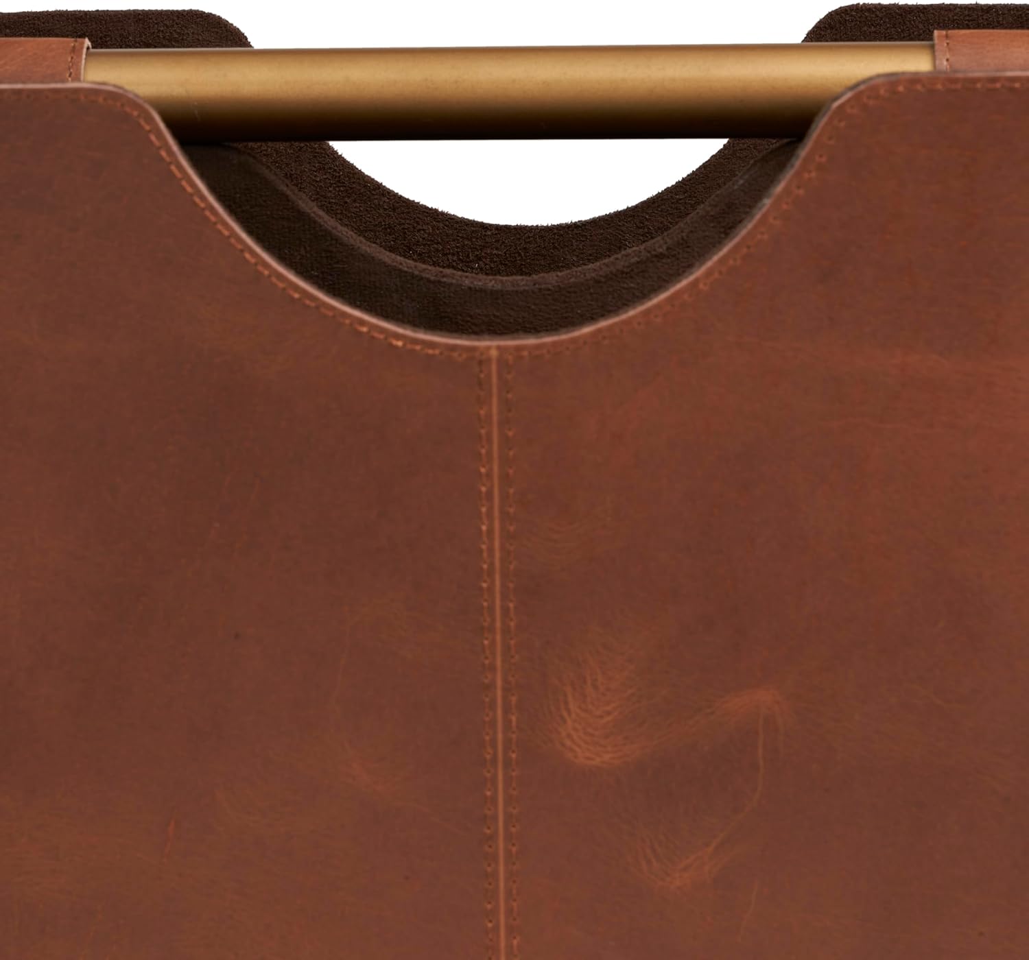 It can be used in your home office or living room to keep your magazines organized and easy to access. This item ships in 1 carton. Leather magazine holder makes a great gift for any occasion. Suitable for indoor use only. This item ships fully assembled in one piece. Leather and hair on hide are natural products, and therefore no two will be alike. There may slight variations in pattern, natural blemishes, colors, and overall aesthetic of the product. Maximum weight limit is 10 lbs. Made in India. This is a single brown colored magazine rack. Modern style.