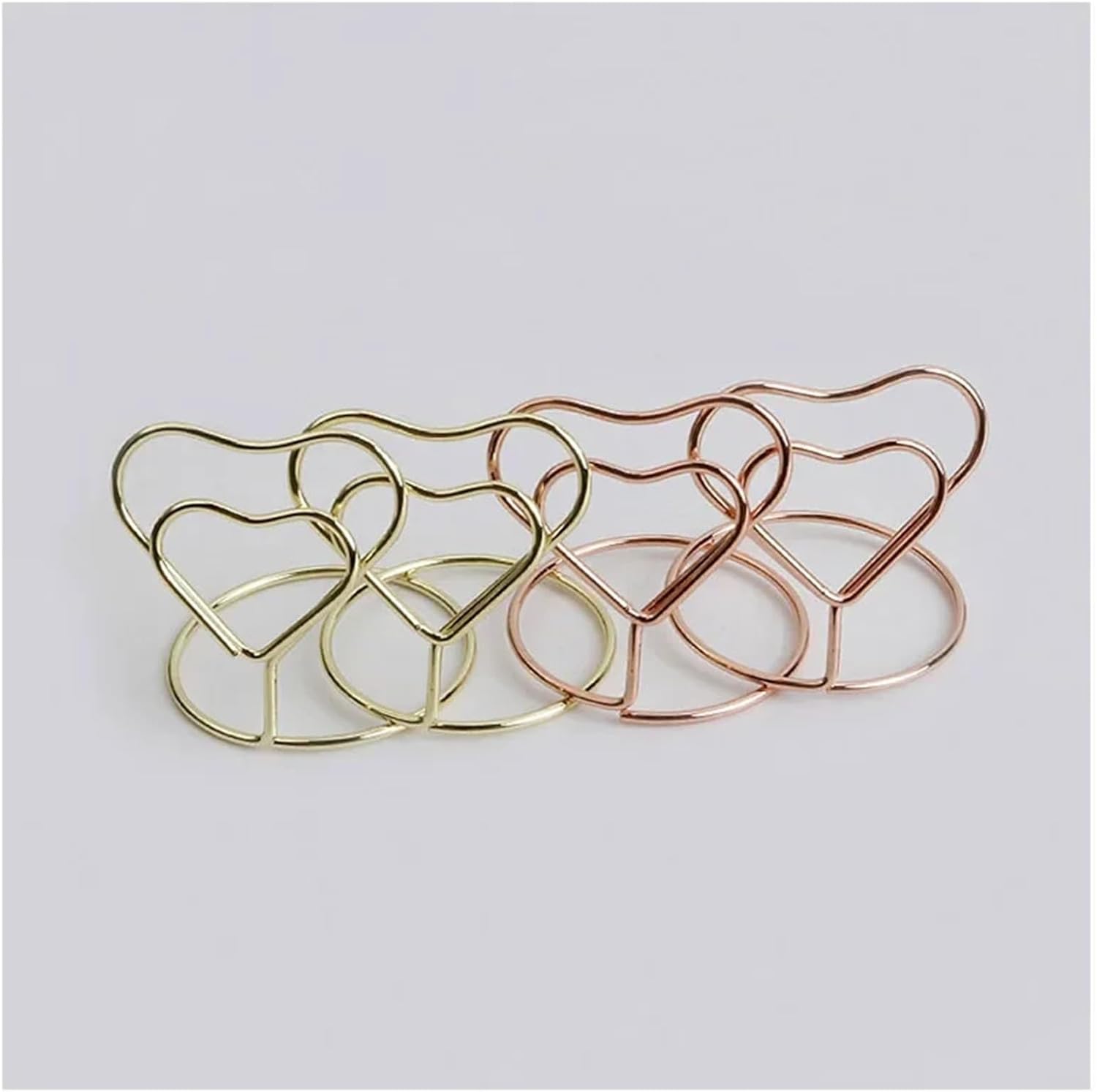 Material: Metal Size: 3.8cm / 1.5 inches in wide, and 4cm / 1.57inch in height Color: Silver, Rose, GoldQuantity: 20pcsNote:1. The real color of the item may be slightly different from the pictures shown on website caused by many factors such as brightness of your monitor and light brightness.2. Please allow slight manual measurement deviation for the data.Practical Usage Tips: Use with regular-sized cards (avoid overly large/heavy items for optimal stability); wipe clean with a soft cloth after use for easy maintenance; store in a dry place when not in use; ideal for indoor use to ensure stability