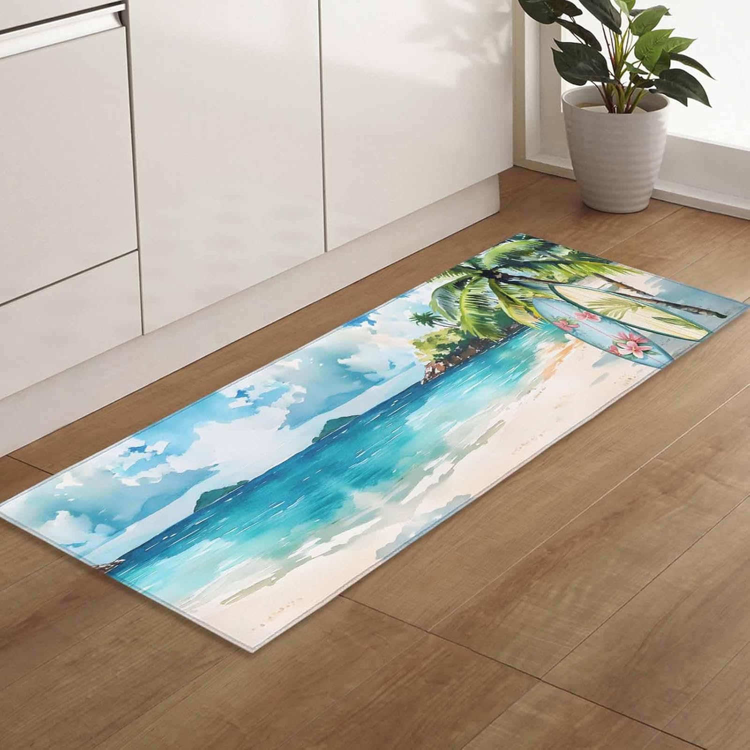Specification 2 Pieces Kitchen Rugs and Mats Size 15.7x23.6in+15.7x47.2in (About 40x60cm+40x120cm) 18x30in+18x48in(About 45x75+45x120cm) 18x30in+18x60in(About 45x75+45x150cm) 19.7x31.5in+19.7x47.2in (About 50x80cm+50x120cm) 19.7x31.5in+19.7x63in (About 50x80cm+50x160cm) 23.6x35.4in+23.6x70.9in (About 60x90cm+60x180cm) 20x24in+20x48in (About 51x61cm+51x122cm) 1 PC Indoor Doormat Size 15.7x47.2in (About 40x120cm) 19.7x47.2in (About 50x120cm) 18x47.2in (About 45x120cm) 18x59in (About 45x150cm) 19.7x63in (About 50x160cm) 23.6x70.9in (About 60x180cm) We provide 1 and 2-piece runner rugs set to meet diversified needs. Please allow a measurement error of 1-3cm. Area Carpet Advanced Feature Absorbent non-woven fabic surface; Non-slip rubber backing; Thin and low profile design; Does not easy to fade and not shrink, bringing long-lasting durability. Ideal Present Perfect present for lovers, friends, family and neighbors during the Independence Day, Thanksgiving, Halloween, Birthday, and housewarming. 100% Service This kitchen rugs may have creases during transportation, you can use an iron to iron the doormat. Kindly please note that - there may be slight deviations because of the different monitor and lights. Any questions about the mats, please do not hesitate to let us know.