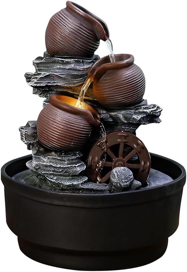 Tabletop Water Fountain with Bowls and Waterwheel – Environmental Resin Meditation Desktop Fountain for Home & Office Decor, Featuring a Relaxing Indoor Waterfall