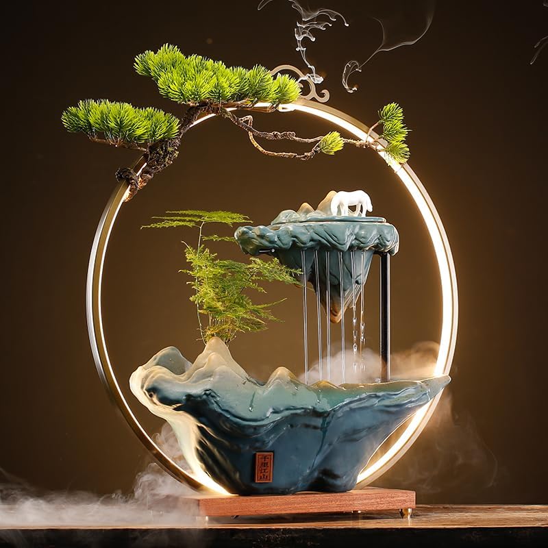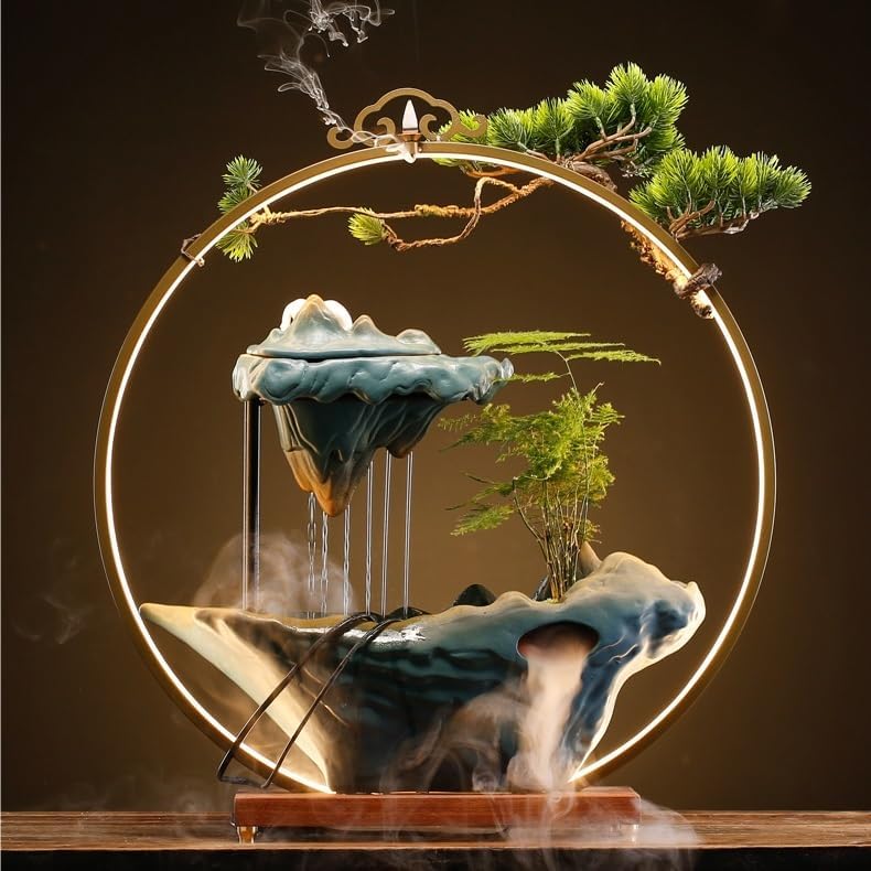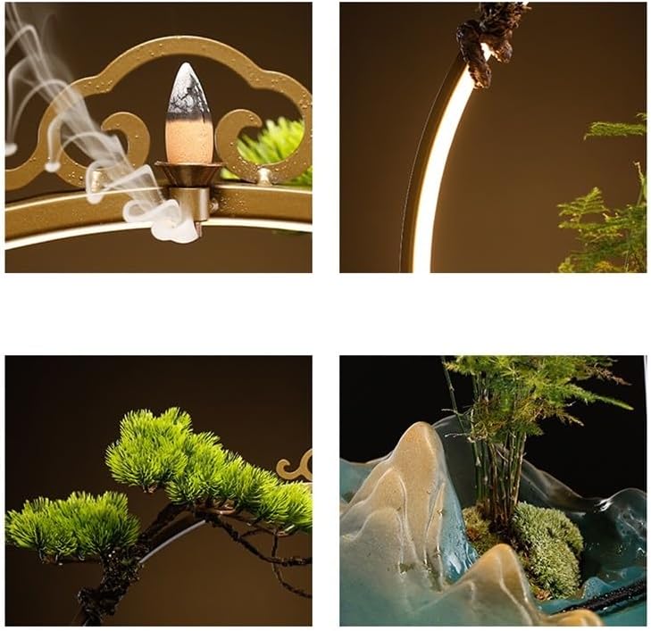 Perfect for your office environment, living room, study, bedroom, etc. It can also be used as a home decoration gift for friends and relatives, which is a very good choice.Product name: Desktop fountainProduct material: wood + ceramic + metal + light ringProduct packaging: Desktop fountain * 1 (the product does not include incense cones and plants)Notes:Please confirm the product size and color before purchasingProducts other than the products shown in the main picture are for display only and are not included.Due to differences in lighting, display and personal color, there may be color differences between the actual product and the photo. Please refer to the actual product.The above data is for reference only. The size is measured manually and there will be an error of 0-2cm. Please refer to the actual product. Thank you.