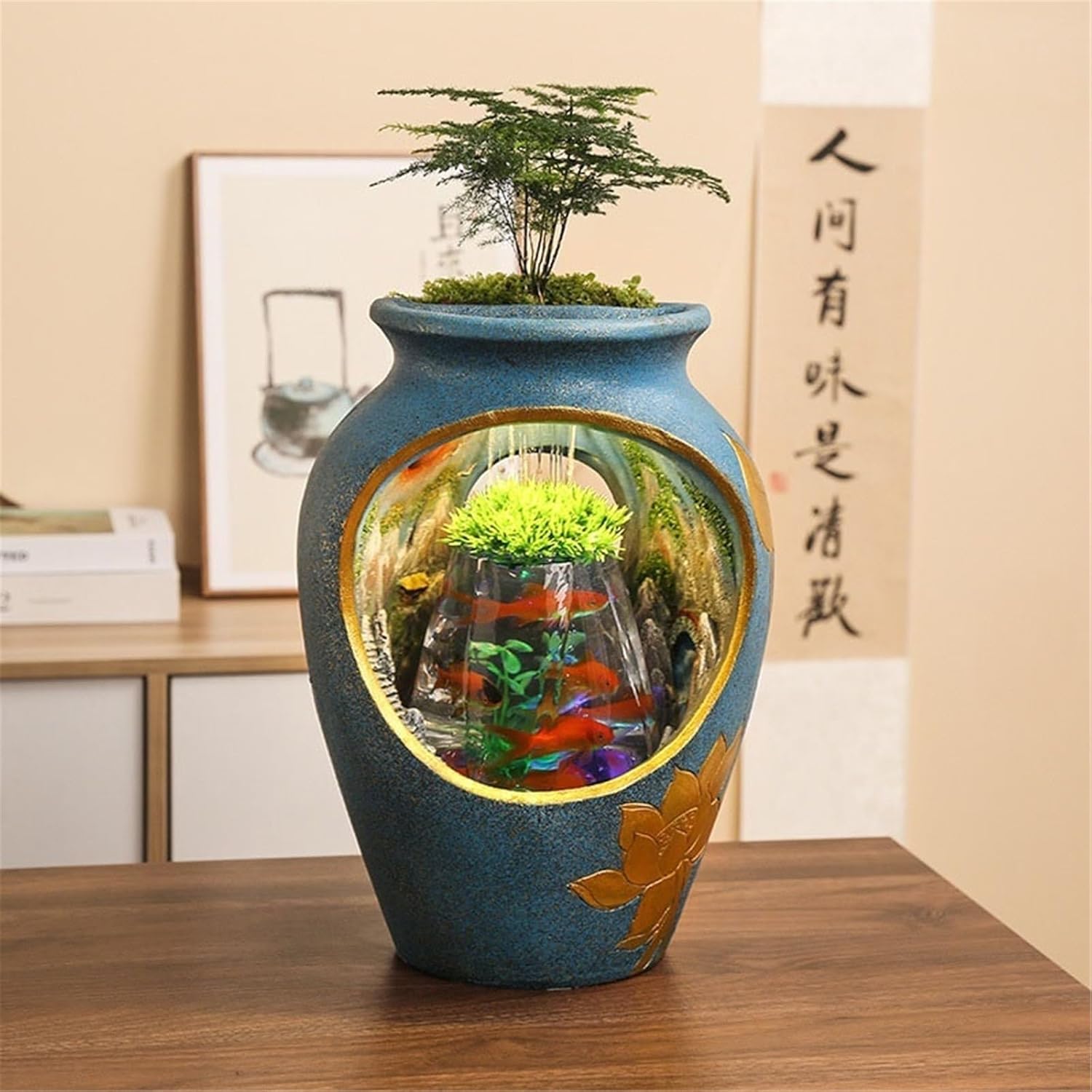 ndoor fountains with the flow of water can increase indoor air humidity, bringing fresh air to anyone.Resin Circulating Water Tabletop Fountain, Office DecorName: Flowing Water Ornament, Tabletop Fountain, Indoor FountainMaterial: ResinSuitable Places: Living Room, Study, Office, Hotel, Club, etc.Package: 1 × Tabletop FountainPlease Note:1. Please confirm size and color before purchasing.2. Items not shown in the product image are not included.3. Due to differences in monitors, product color may vary slightly. Please understand this.4. Dimensions are manually measured and for reference only. Slight differences may occur. Please refer to actual product dimensions for accuracy. Thank you.
