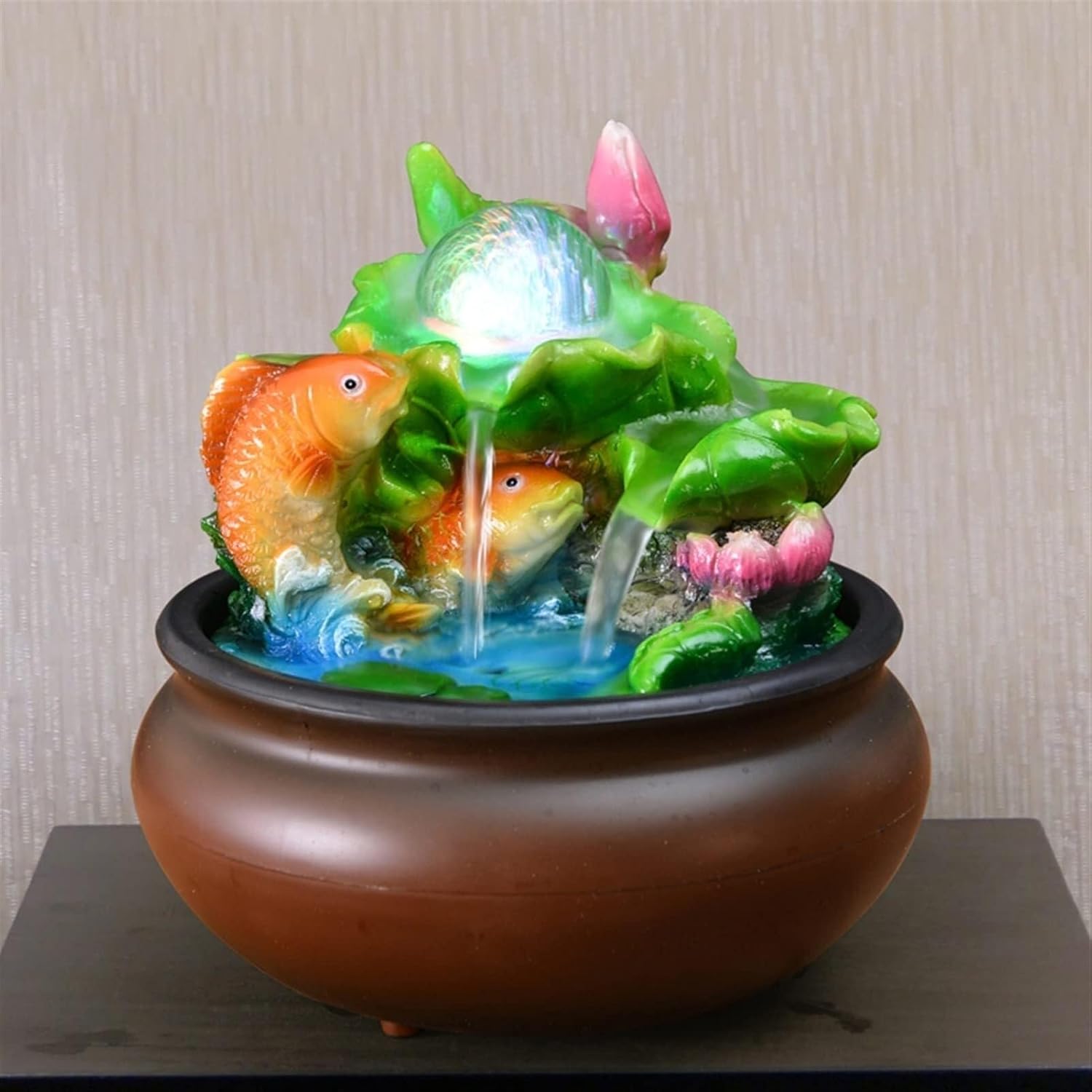 Create a calming environment with this Waterfall Desktop Fountain. Perfect for your home, office, or living room, this small, decorative fountain mimics the soothing sounds of a natural waterfall while adding beauty and tranquility to any space. Measuring 16x16x17 cm, it is the ideal size for desktops, nightstands, or small tables.Handcrafted from resin, the fountain replicates the texture and beauty of a real stone waterfall, ensuring a , long-lasting product that enhances your decor. The design includes a lucky feng shui ball, known for bringing positive energy and good fortune into your space, making it a great addition to any room.The layered water flow not only adds aesthetic value but also provides a relaxing atmosphere, perfect for meditation, yoga, or simply unwinding after a busy day. This desktop fountain is the ideal gift for those who appreciate peace, tranquility, and beautiful design.Key Features:Material: synthetic resin that mimics real stoneSize: 16x16x17 cm (6.2x6.2x6.6 inches)Function: Improves air and creates a calming, zen-like atmosphereDesign: Features a lucky feng shui ball for positive energy and fortuneApplications: Ideal for home, office, living rooms, bedrooms, and moreEasy to Use: Simply fill the fountain with water, plug in the pump, and enjoy the peaceful sound of flowing water. This low-maintenance fountain brings a natural, serene ambiance to any room.