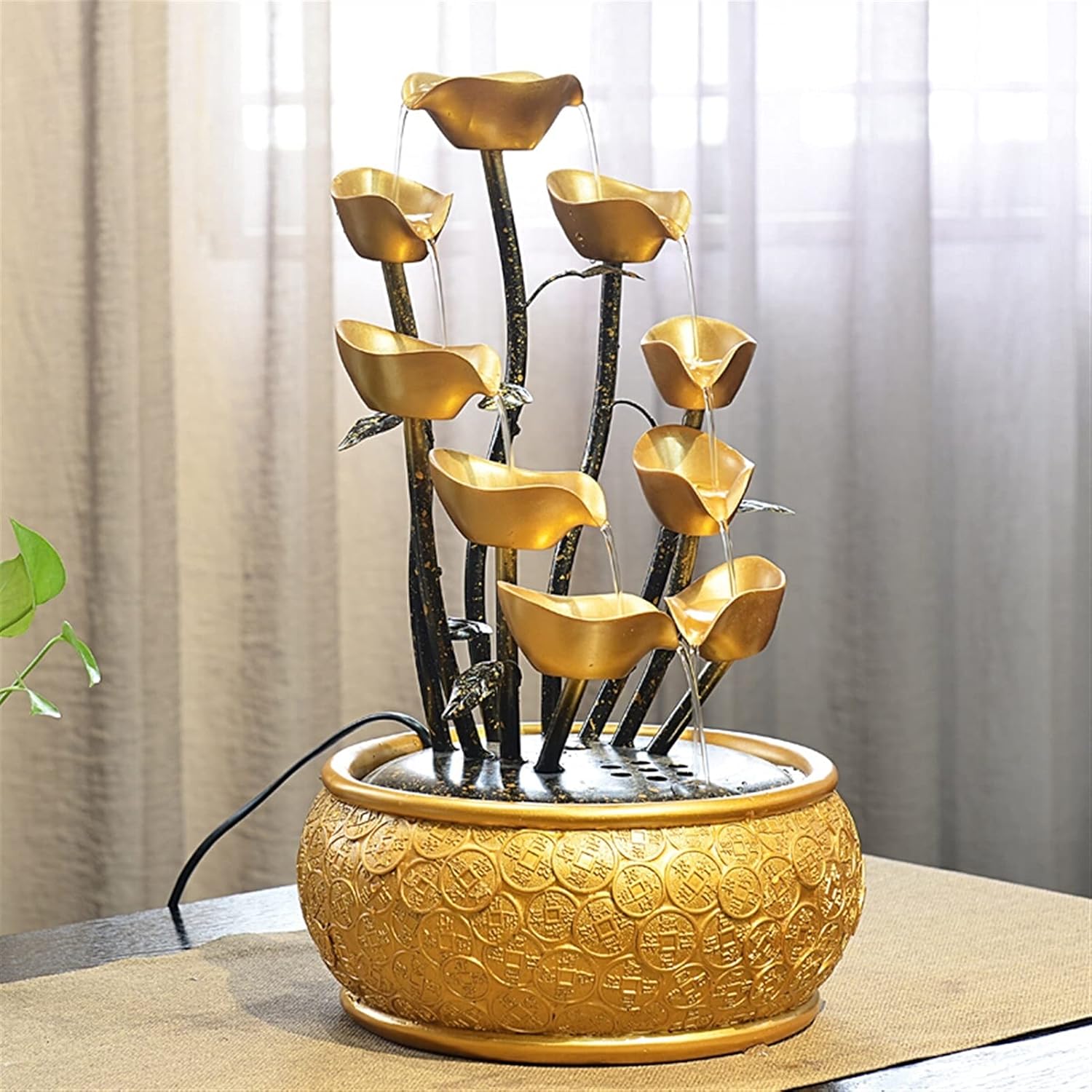Reminder: Please check the package promptly upon receipt. If there is any damage, please feel free to contact us at any time.Indoor tabletop fountains create a soothing ambience for any home or office. The sound of running water is relaxing and adds a sense of peace and tranquility to your environment.Product Name: Desktop Fountain Product Material: ResinProduct Voltage: 110V-240V Style: wrought iron lotusApplicable scenarios: suitable for living room, bedroom, doorman, office, etc.Warm Tips:1. Please check the size and color before purchasing.2. Except for the indoor fountain shown in the product photo, other items are not included.3. Please note that due to different monitors, slight chromatic aberration may occur, please understand.4. Due to manual measurement, please allow a difference of 0cm-2cm, thank you.5. Our store has a variety of styles and colors, you can go to my store to view.6. Welcome your sharing and feedback so that we can provide you with better products and services.
