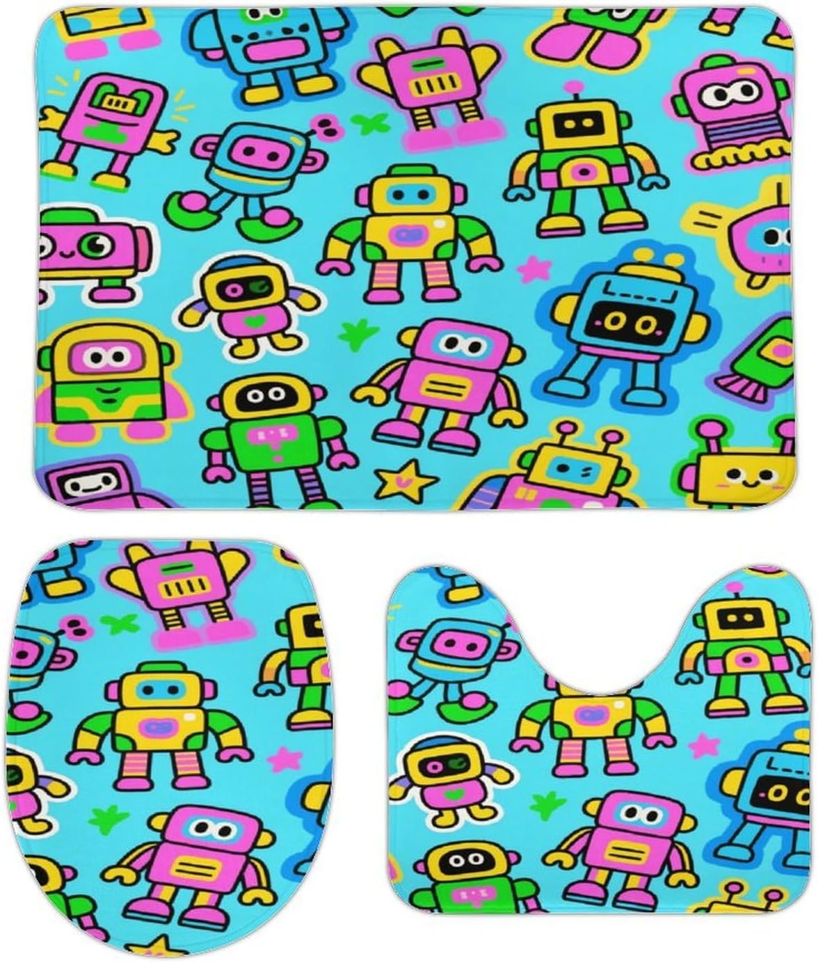 • Soft and comfortable: This Cartoon Robot bath rug set 3 piece is made of high-quality coral fleece, and the fabric feels as soft as terry cloth, bringing you the ultimate luxurious soft feeling. The exquisite pattern design adds a lovely and unique atmosphere to your beloved room