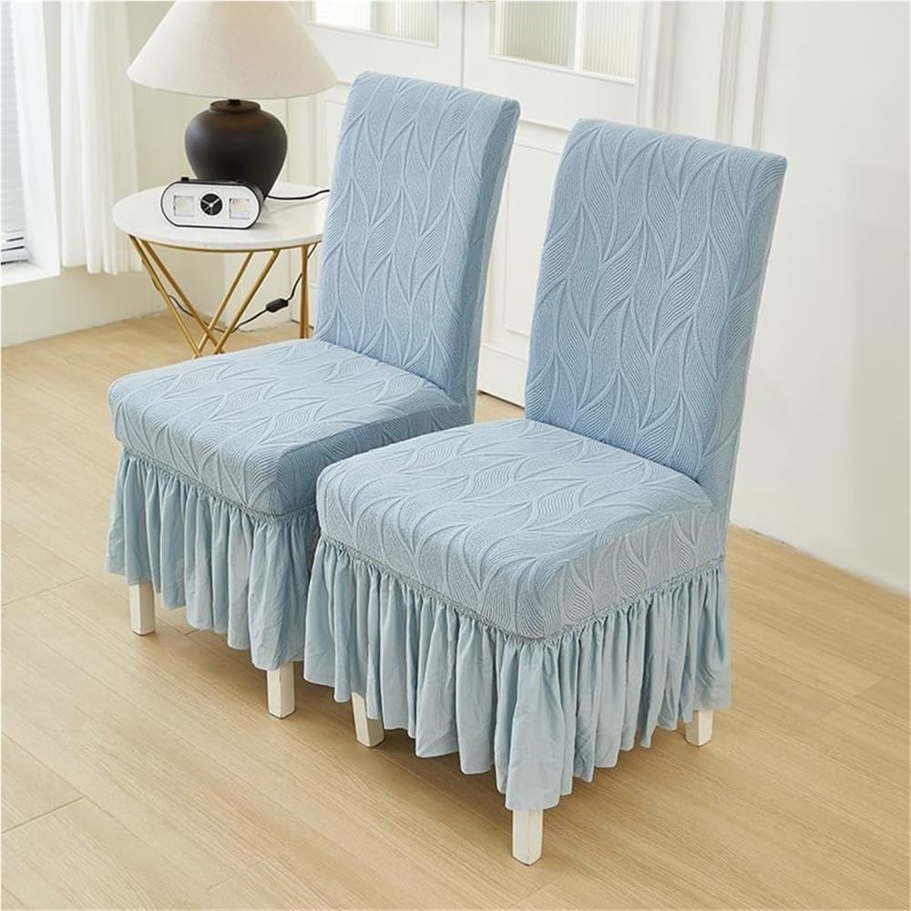 Stretch Dining Room Chair Covers With Ruffle Skirt 2/4/6 PCS Leaf Texture Parsons Chair Slipcovers Country Style Kitchen Chair Protectors For Hotel Ceremony BanquetThis chair cover is an essential item for safeguarding your chair. It provides both style and functionality.Crafted from breathable fabric, they offer, wrinkle-free fit while enhancing the decor with a stylish ruffled skirt design.Not only does it protect your chairs from dust, scratches, and other potential damage, but it also adds a touch of elegance to your home decor, enhancing the overall beauty of your living room.Suitable for Chair Size: Back Height: 45-55 cm (17.7-21.6 inches); Back Width: 38-48 cm (15-19 inches); Seat Length: 38-48 cm (15-19 inches);Seat Width: 38-48 cm (15-19 inches).Packing includes: Chair Cover * 2/4/6 piecesNote:1. The size is hand-measured, please allow a slight deviation within 3 cm.2. The real color of the item may be slightly differently from the pictures shown on the website caused by many factors.3. If you have any questions, please feel free to contact us.