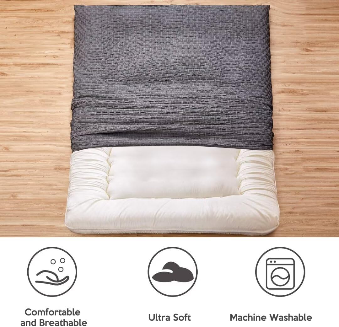 Weave Textured Zippered Futon Cover for Japanese Futon Floor Mattress, Super Soft and Machine Washable