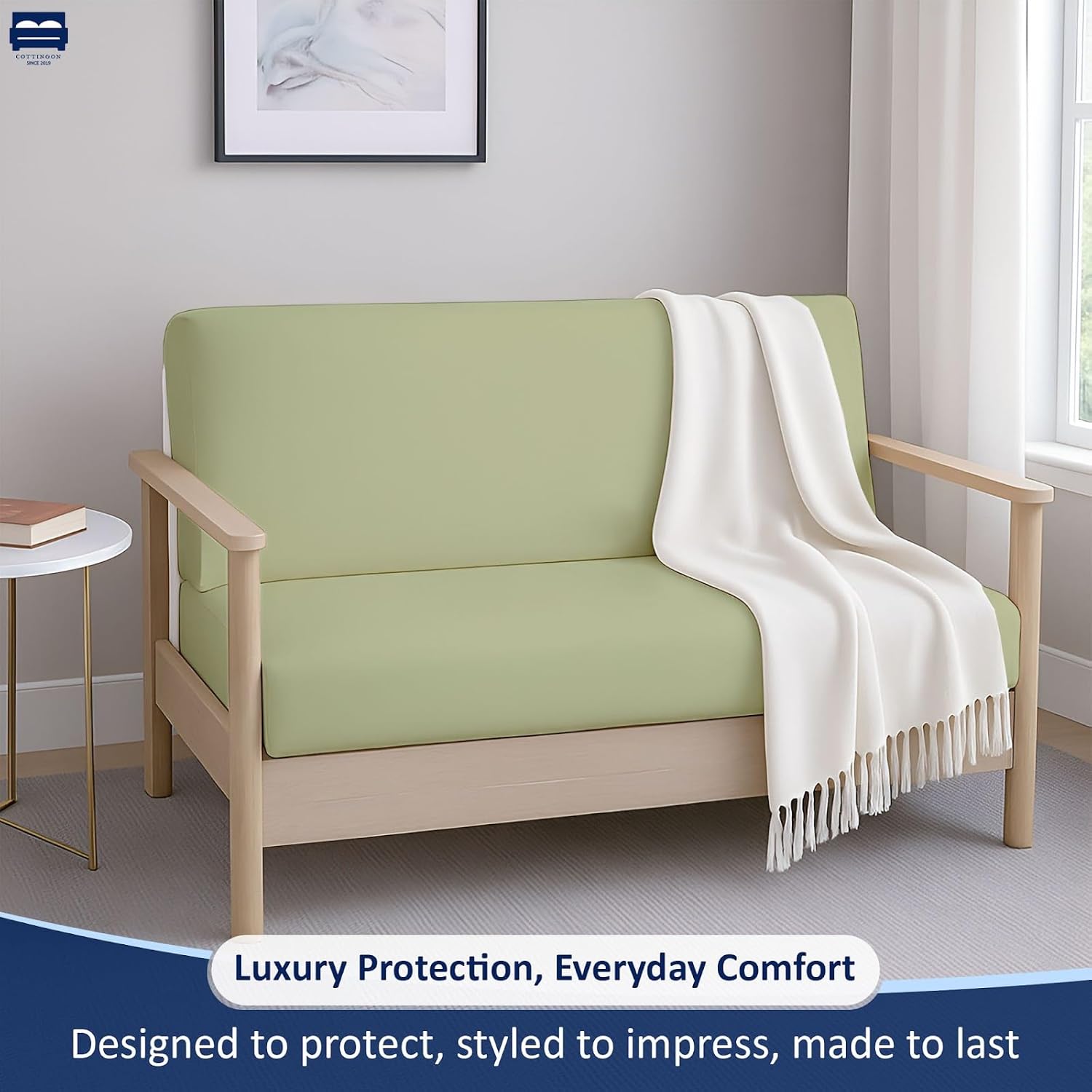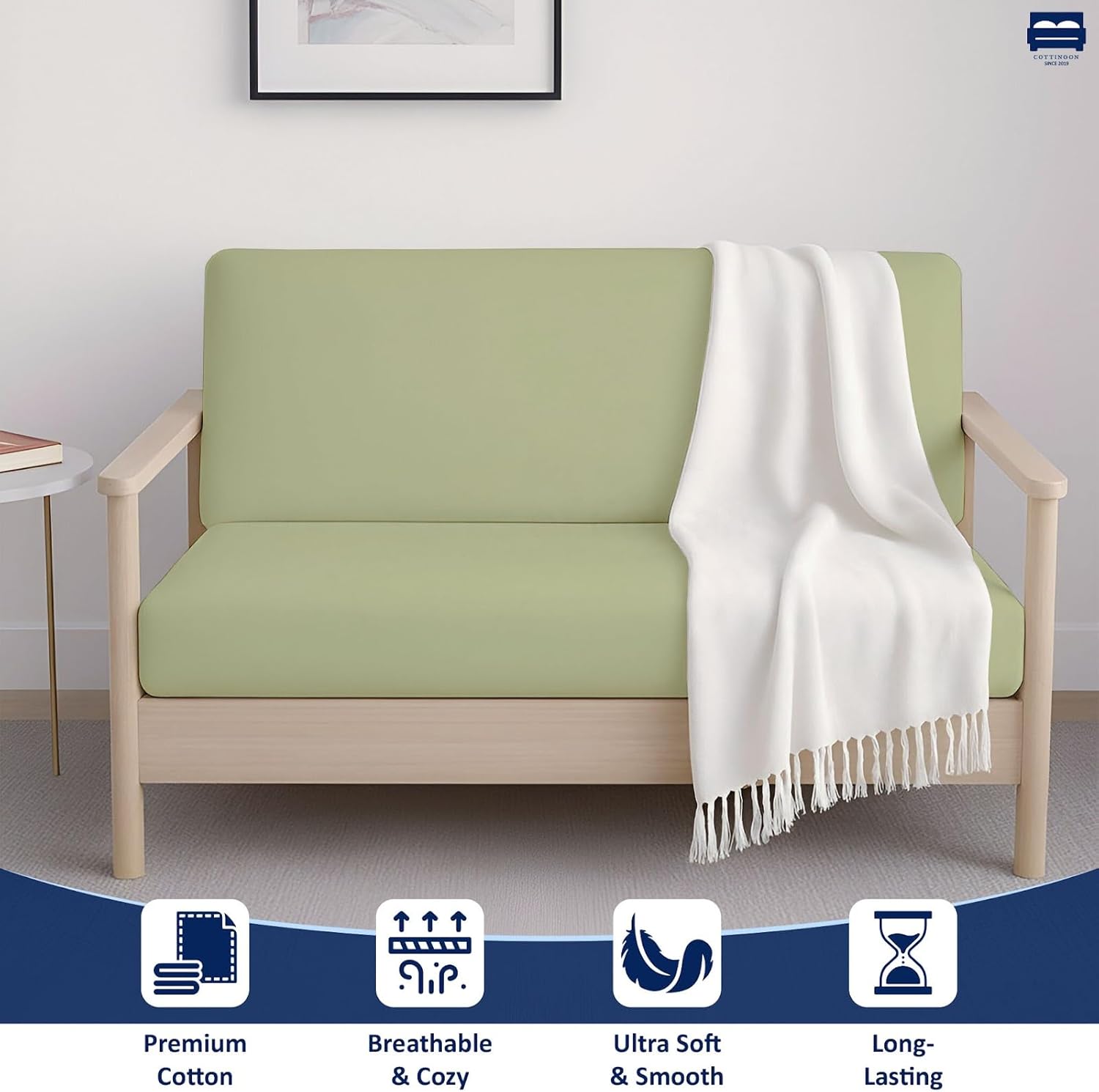 Upgrade your futon with the Cottingon 100% Cotton Futon Cover, available in Twin (39" x 75"), Twin XL (39" x 80"), Full (54" x 75"), Full XL (54" x 80"), Queen (60" x 80"), and King (78" x 80") sizes. Designed as a futon mattress cover, sofa bed protector, slipcover, and couch cover, it combines style, comfort, and protection in one. This premium cover fits futons up to 8 inches deep, keeping your sofa bed snug, wrinkle-free, and fully protected. Made from soft, breathable 100% cotton, it is OEKO-TEX Certified, ensuring safety and freedom from harmful chemicals. The hidden zipper provides a secure fit and makes removal effortless for washing. Its elegant white finish complements any décor, from modern minimalist to cozy traditional spaces. Perfect for living rooms, guest bedrooms, dorms, apartments, and studio spaces, this versatile cover is machine washable, durable, and built to maintain softness and color over time. Use it as a futon mattress cover, couch cover, or slipcover to refresh and protect your furniture. Protect, refresh, and elevate your futon with Cottingon – safe, stylish, and durable for everyday use.