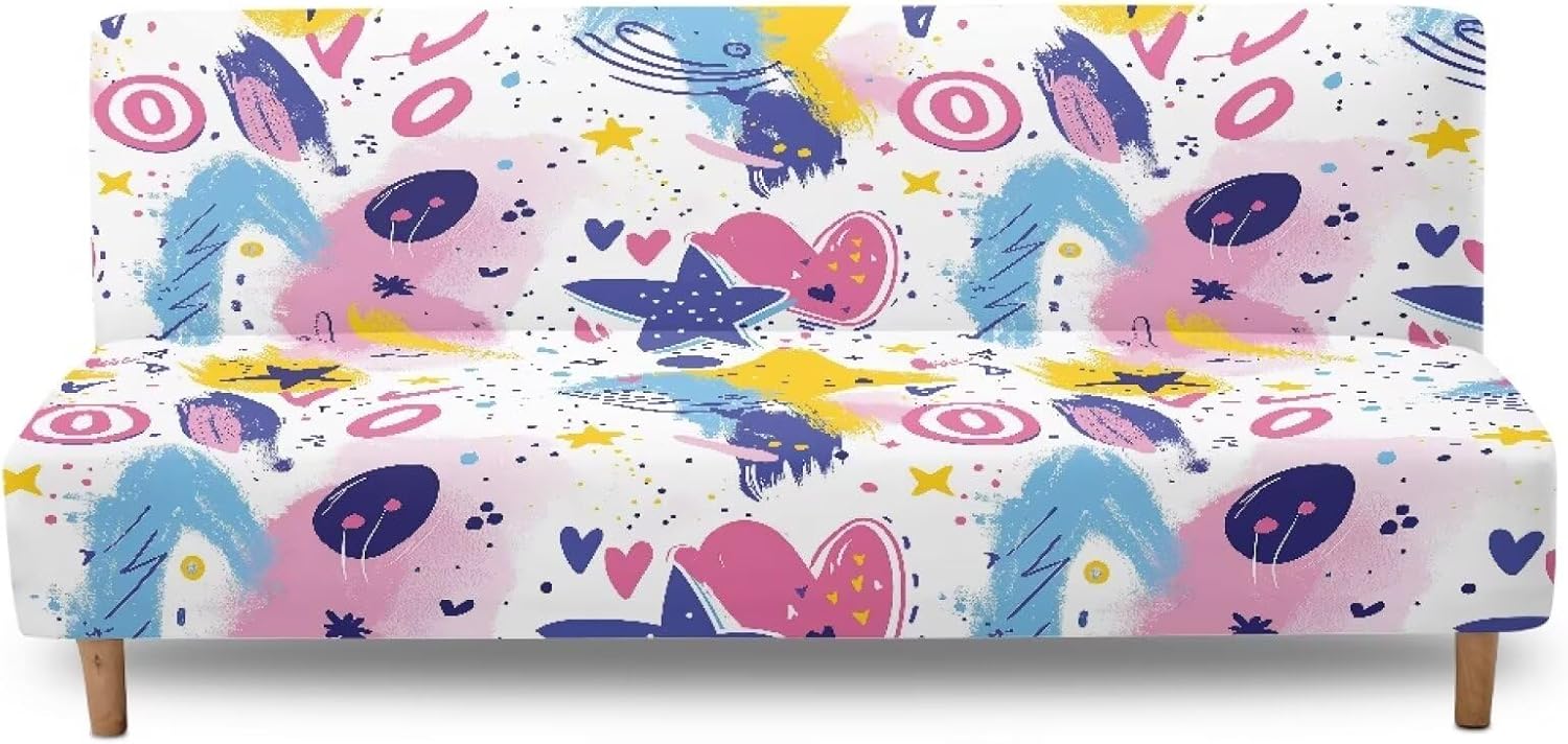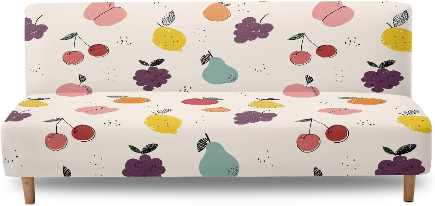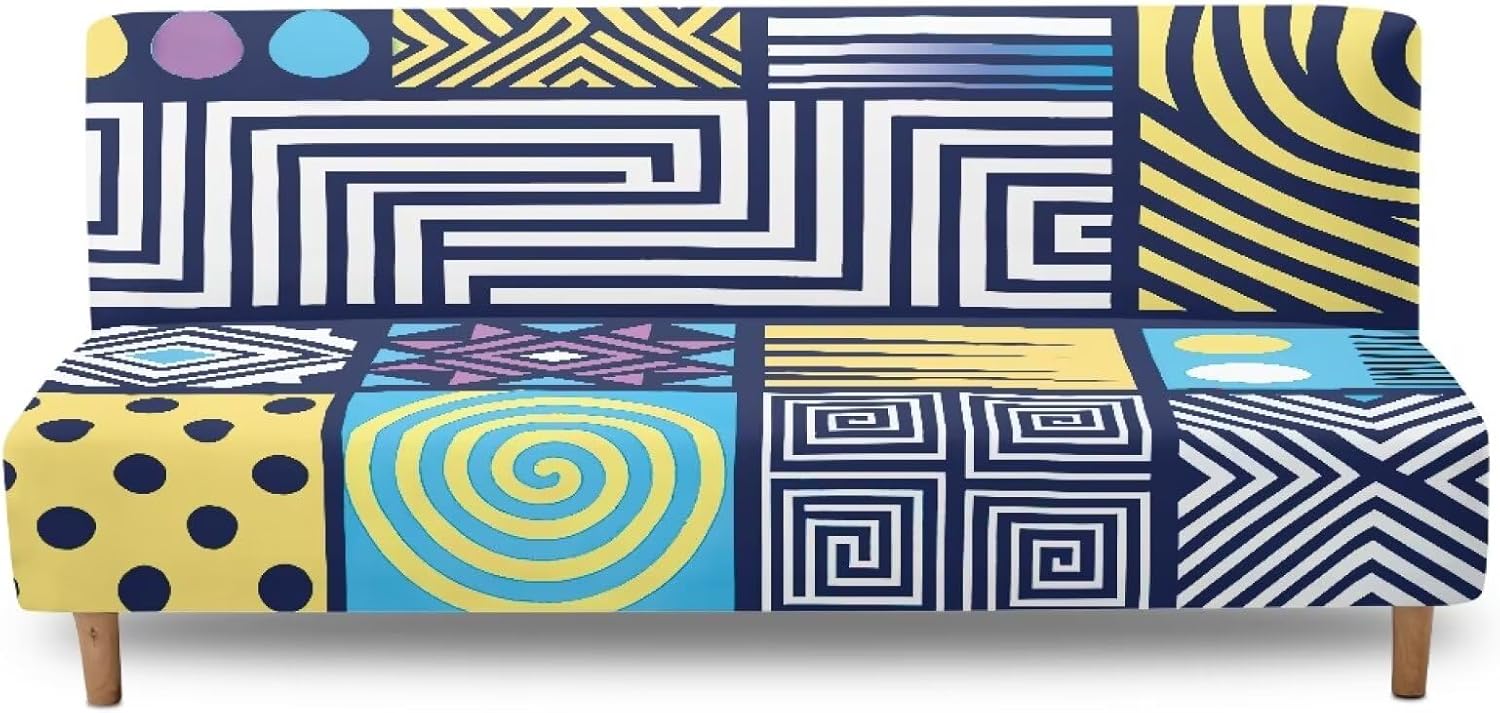Crafted from a polyester and spandex blend, this armless futon cover offers the perfect balance of softness and stretch for a snug fit. The scratch-resistant, breathable fabric stands up to daily wear and stays cool during long sits, maintaining a neat appearance and comfy touch all day. Full-coverage design shields your futon sofa from daily wear, pet scratches, and food spills; the elastic bottom ensures a snug, non-slip fit to keep the cover in place during use.Its stretch allows this cover to complement most furniture styles. This futon sofa cover is designed for seat widths between 68 to 85 inches — one size fits most. Please measure your furniture before ordering and refer to the measurement guide in the product images for details.Crafted with thermal transfer printing, the futon cover features richer, more vibrant patterns and colors; it locks in color to resist fading and peeling, boosts product lifespan, and revitalizes your futon couch with a fresh new look.Wrinkle-resistant and machine washable for hassle-free care. Wash separately in cold water on a gentle cycle; avoid bleach.