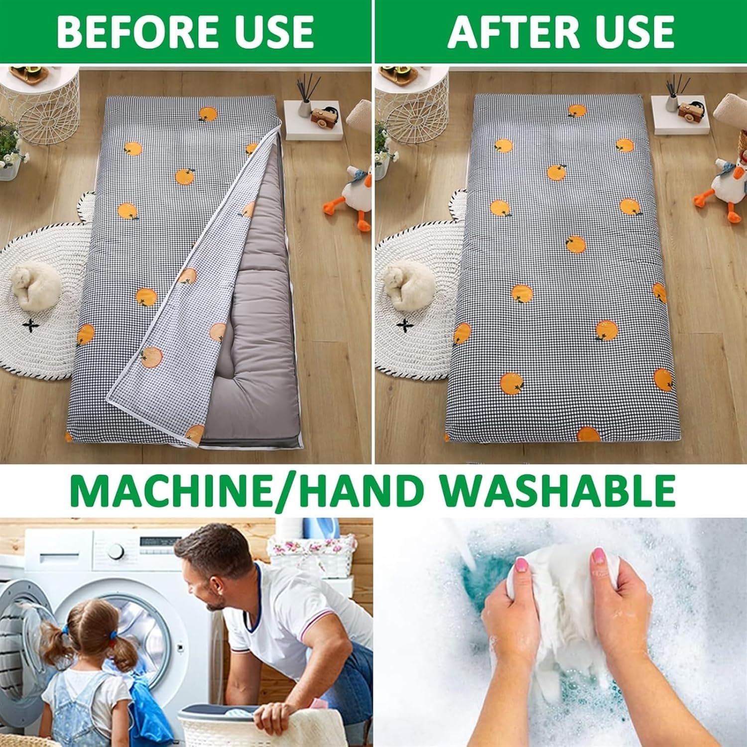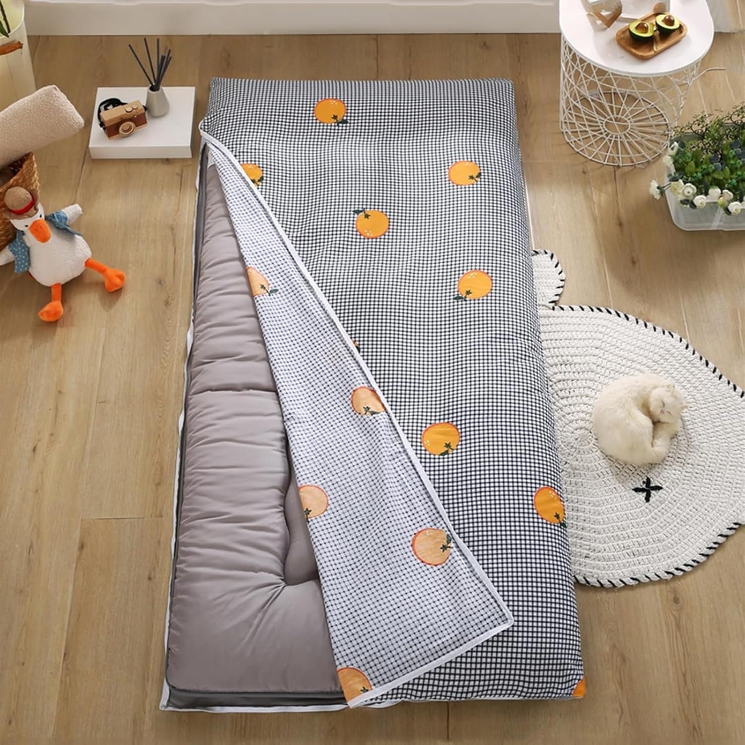 Enhance your sleeping experience with the OneGrifN Cover for Traditional Japanese Floor Futon Mattress. This beautifully designed cover features a fresh floral pattern, Ideal for various environments such as homes, hotels, and dormitories, this cover not only provides aesthetic appeal but also serves as a protective layer against dirt and spills. With its convenient side zipper, installation and removal are a breeze. Plus, it’s machine washable, making maintenance effortless. Transform your futon with this practical and stylish Cover for Traditional Japanese Floor Futon Mattress today!SpecificationsName: zippered futon cover for japanese futon floor mattressFabric: Polyester(Front-Cotton;Reverse-Milk fleece)Size: Twin:90x200cm(35x79in)Full:120x200cm(47x79in)Queen:150x200cm(59x79in)King:180x200cm(71x79in)90x190cm(35x75in)100x190cm(39x75in)100x200cm(39x79in)120x190cm(47x75in)135x190cm(53x75in)135x200cm(53x79in)150x190cm(59x75in)180x220cm(71x86in)200x220cm(79x86in)Details: Japanese Futon Mattress Cover x1