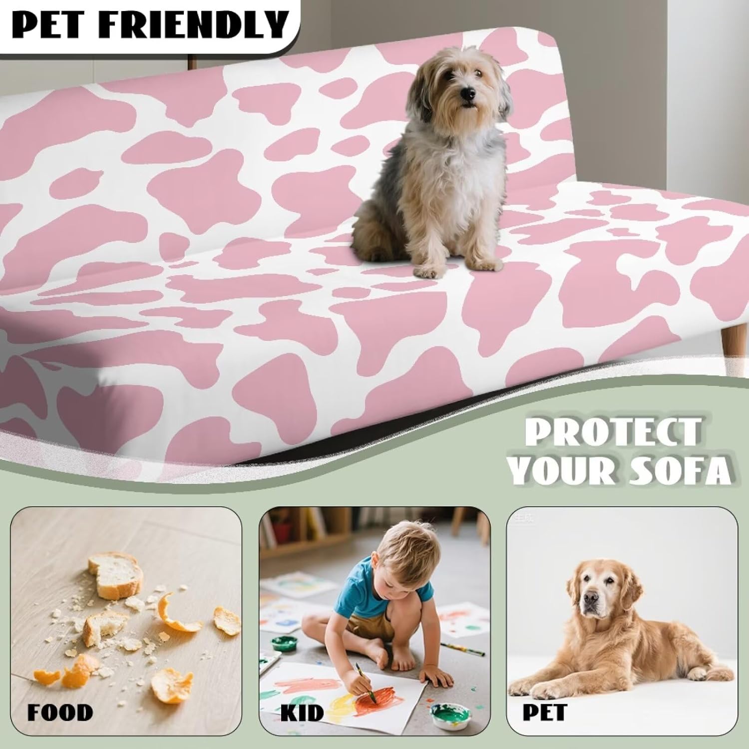Pink Cow Print Non Slip & Dustproof Protector Futon Covers Stretchy Sofa Couch Slipcover with Elastic Bands Armless Sofa Couch Slipcover Machine Washable