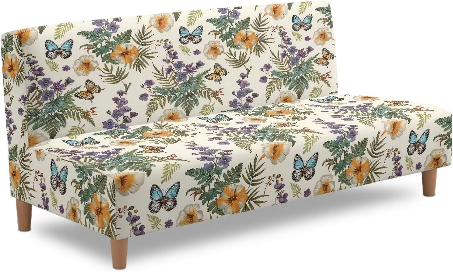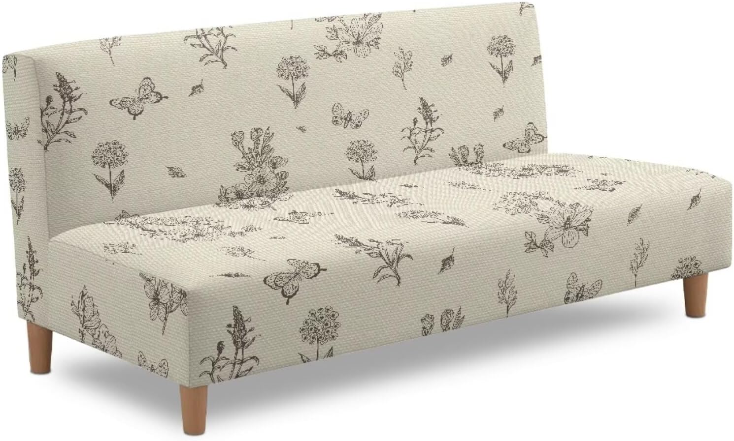 Material: Polyester & Spandex Fit Dimensions: Sofa length: 68 to 85 inches Sofa width: 23.5 to 31.5 inches Backrest height: 23.5 to 31.5 inches Sofa cushion thickness: 8 to 10 inches Package Includes: 1-piece x Armless Sofa Cover Elastic & Stretchable:Fits armless sofas with a sitting width between 68–85 inches for a secure, tailored fit. The elastic edge ensures the stretch futon slipcover stays in place, providing a snug fit without shifting Protect Your Furniture: Shields against scratches, spills, stains, and everyday wear and tear Chic & Stylish Design: One-piece armless sofa bed cover for a sleek, beautiful look. Ideal for futons and armless couches Machine Washable: Easy to care for with machine washable fabric for convenient cleaning long-lasting and Comfort: Made from stretchy, sturdy fabric for comfort and long-lasting use