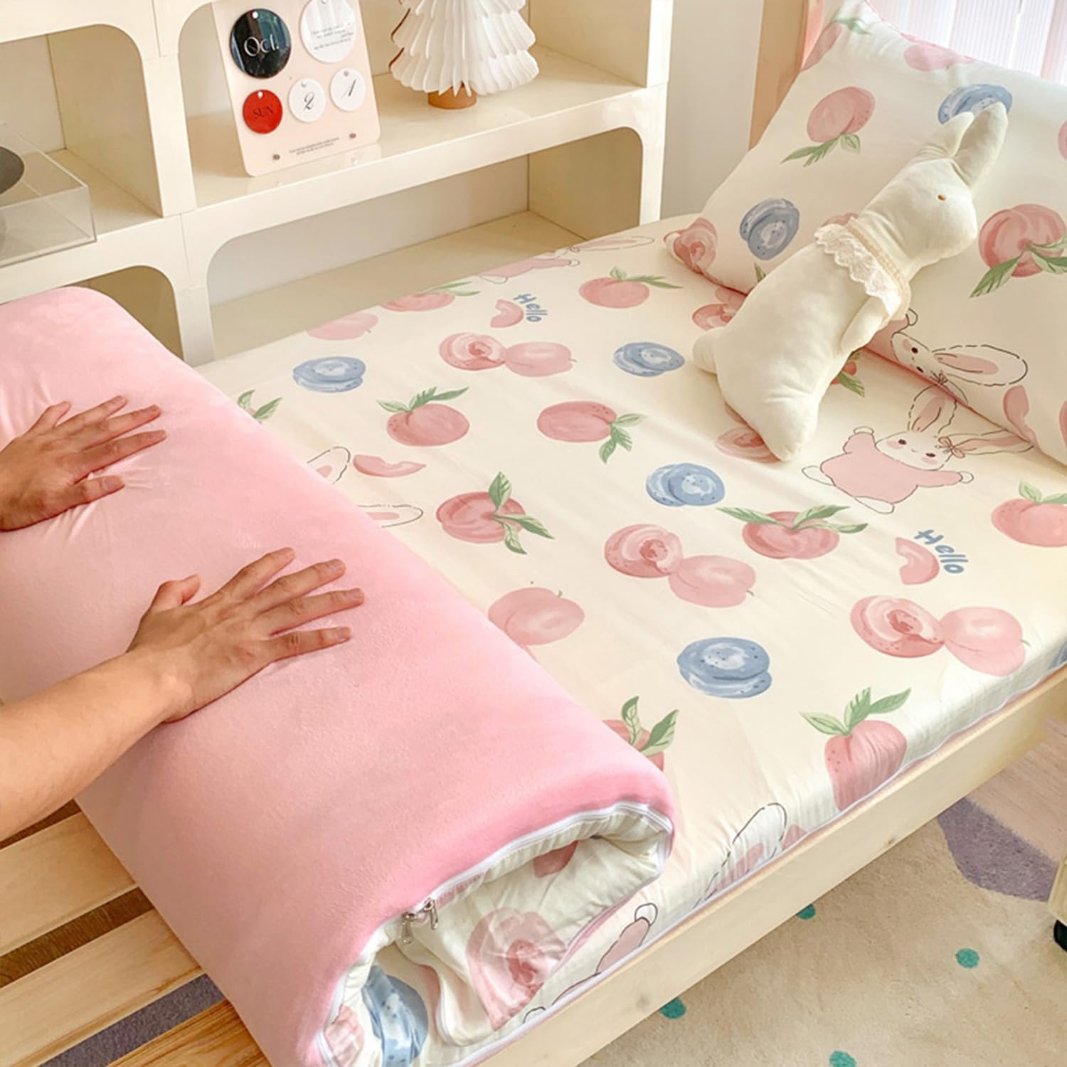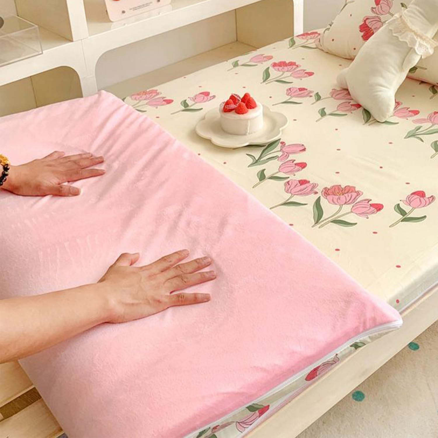 If you have purchased or plan to purchase a Japanese floor mattress,you must have this one too. It's especially a useful form of protection against dirt,stains,spills,and ripsIf your Mattress already has some small tears or stubborn stains you can?t seem to get rid of,a futon cover can hide the damage and improve its appea. Or,if you plan to keep your Mattress outside, futon cover can offer some degree of protection against the elements,too.SpecificationsName: Japanese Futon Floor Mattress CoverFabric: Polyester(Front-Cotton;Reverse-Milk fleece)Feature: High-quality double-head zipper,360° all-round surroundSize: Twin:90x200cm(35x79in)Full:120x200cm(47x79in)Queen:150x200cm(59x79in)King:180x200cm(71x79in)90x190cm(35x75in)Details: Mattress Protective Cover x1Tips:1. Not suitable for innerspring futon mattresses, box cut futon mattresses or stuffed futon mattresses2. The pictures are all taken in kind. Due to the different lighting and monitors during shooting, a certain color difference will be caused