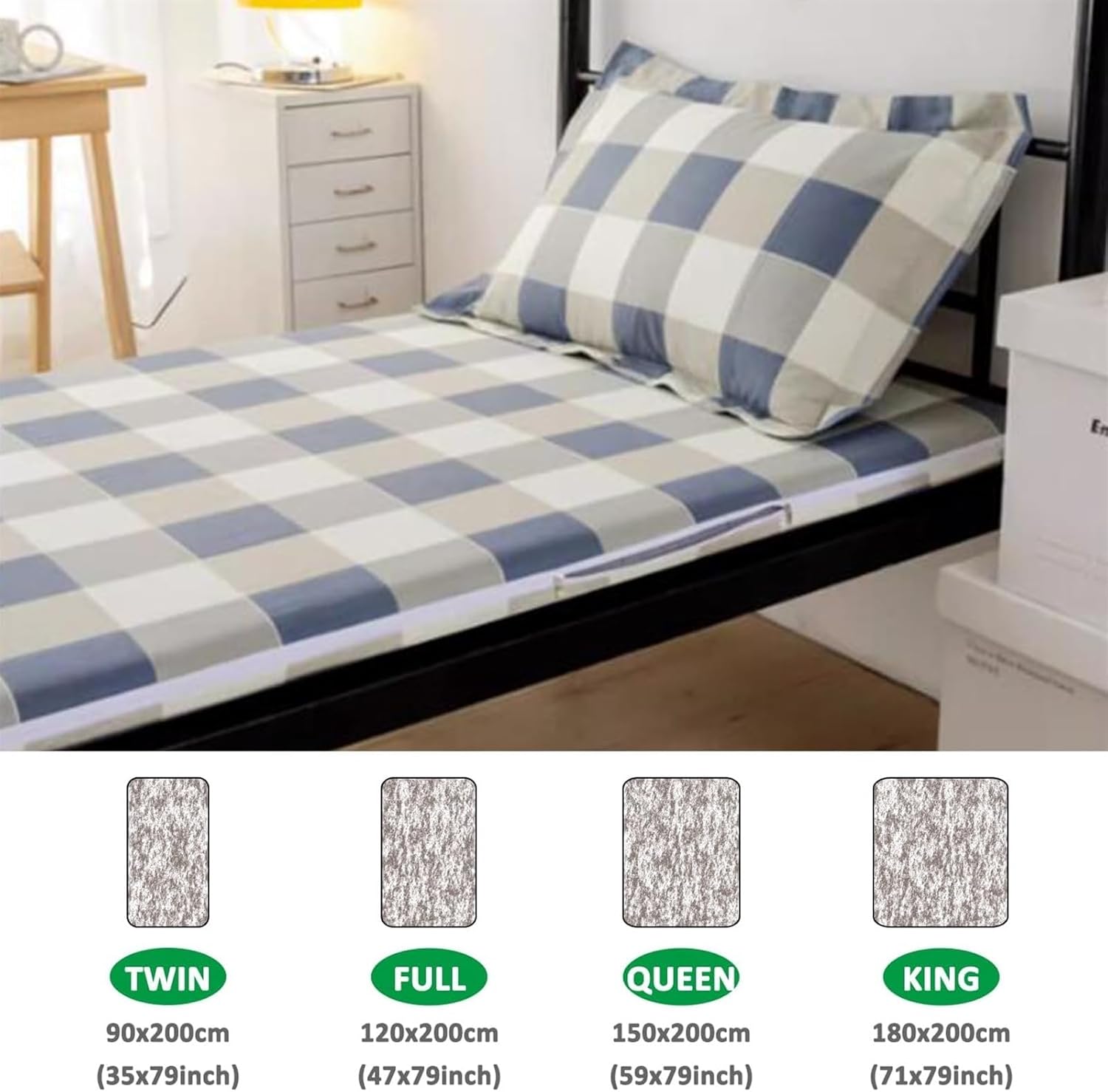 Enhance your sleeping experience with the OneGrifN Cover for Traditional Japanese Floor Futon Mattress. This beautifully designed cover features a fresh floral pattern, Ideal for various environments such as homes, hotels, and dormitories, this cover not only provides aesthetic appeal but also serves as a protective layer against dirt and spills. With its convenient side zipper, installation and removal are a breeze. Plus, it’s machine washable, making maintenance effortless. Transform your futon with this practical and stylish Cover for Traditional Japanese Floor Futon Mattress today!SpecificationsName: Japanese Futon Floor Mattress Protector CoverFabric: PolyesterSize: Twin:90x200cm(35x79in)Full:120x200cm(47x79in)Queen:150x200cm(59x79in)King:180x200cm(71x79in)80x190cm(31x75in)90x190cm(35x75in)100x190cm(39x75in)100x200cm(39x79in)120x190cm(47x75in)Details: Futon Mattress Cover x1