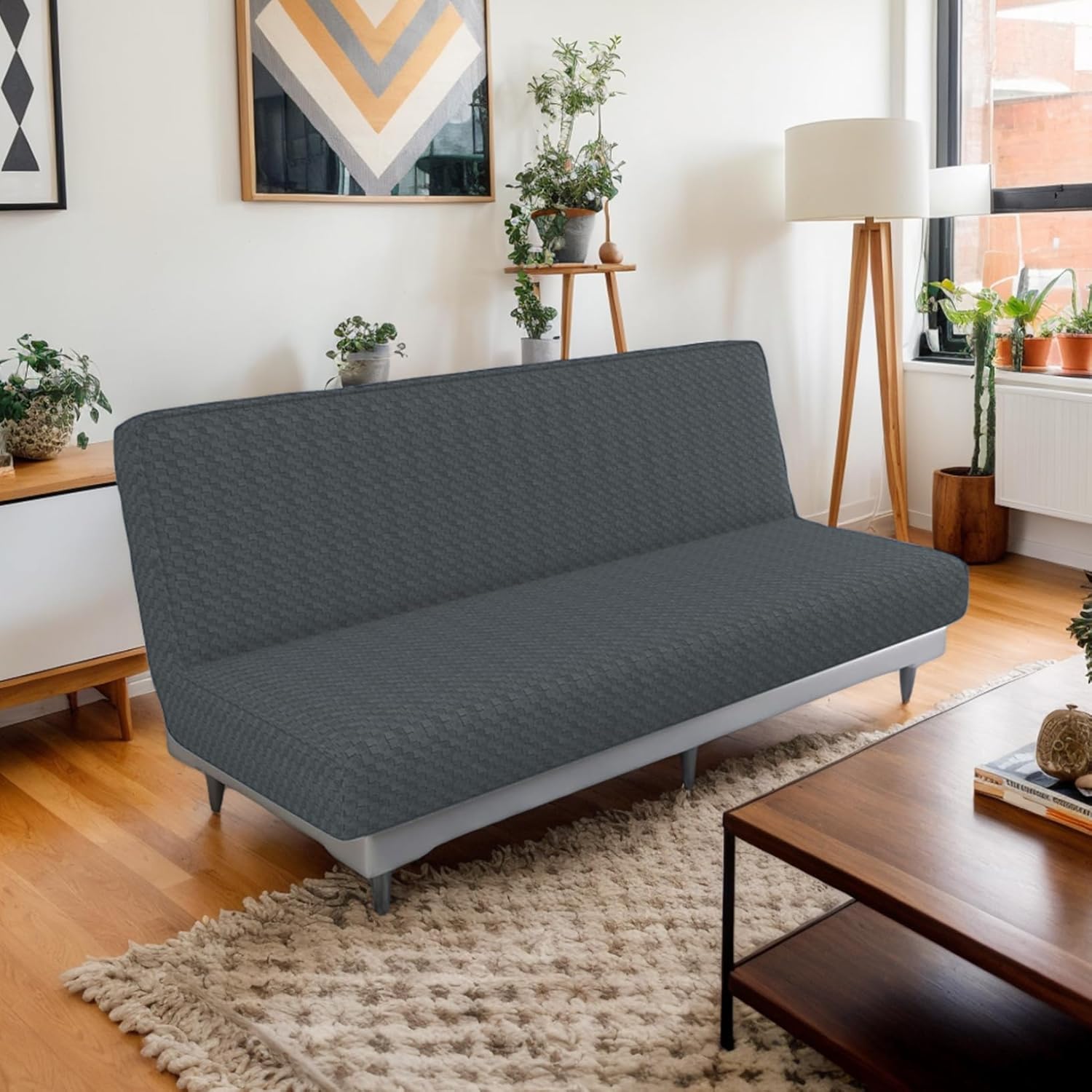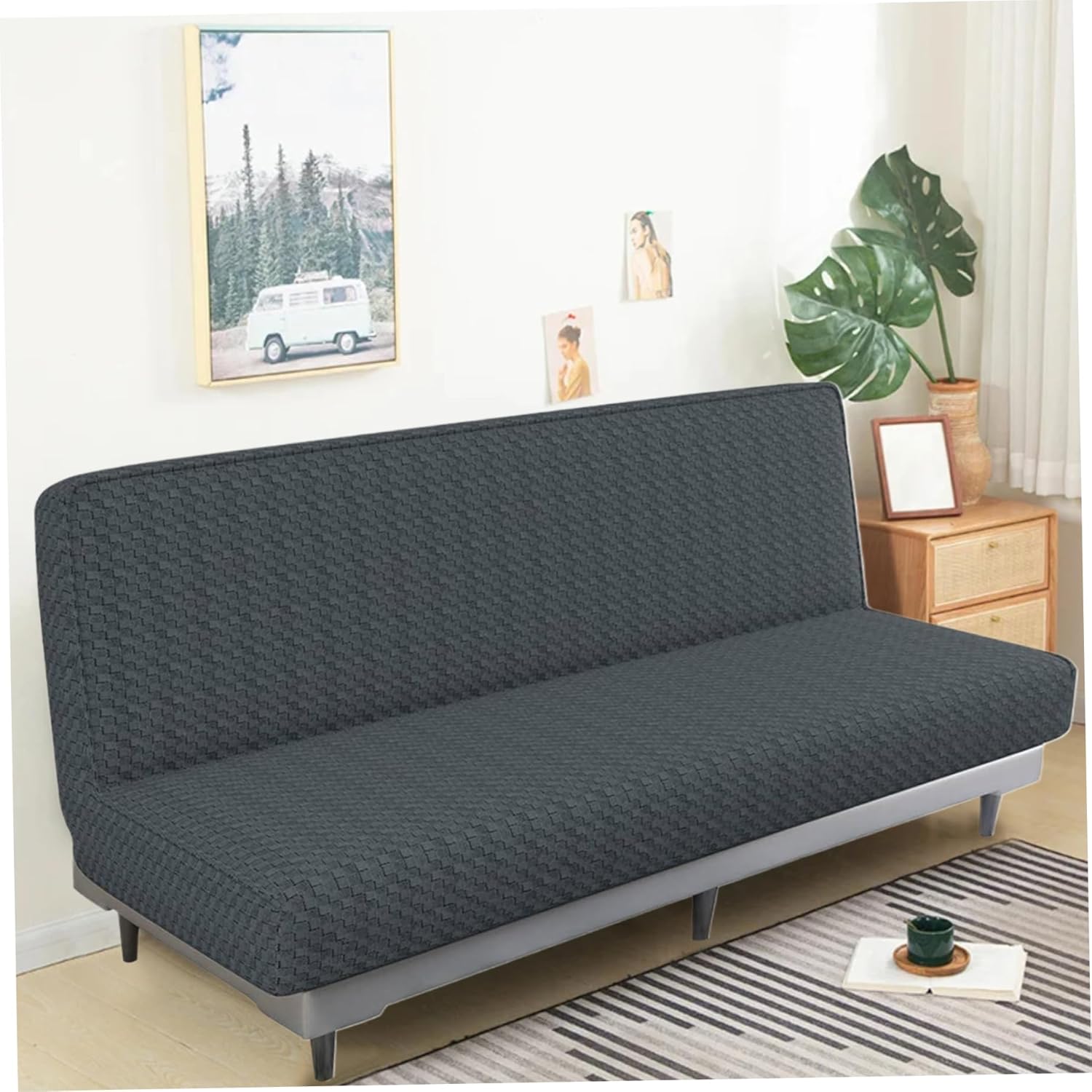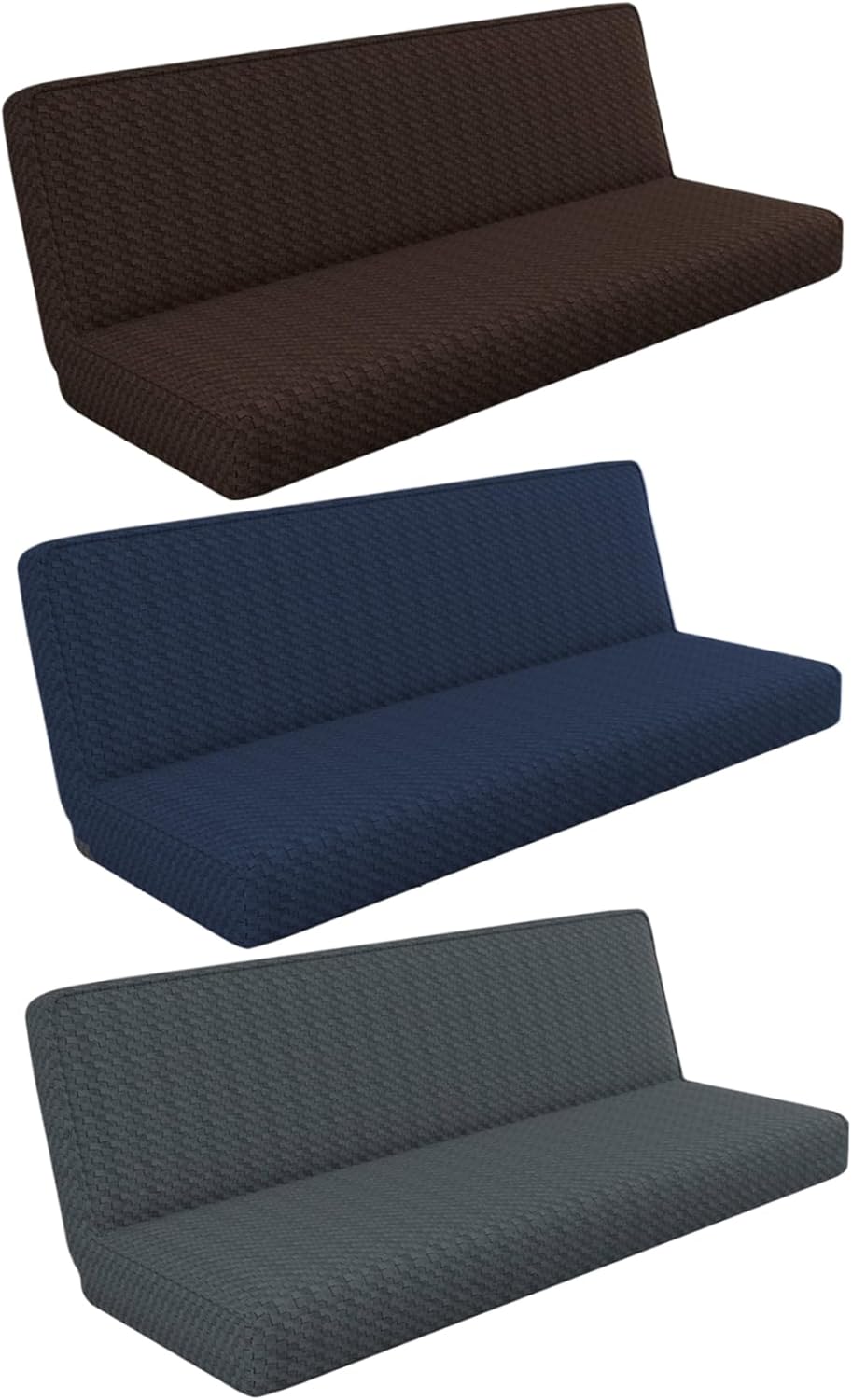 Description: Transform your futon into a stylish and practical centerpiece with this minimalist single-color checkered futon cover. Designed for armless sofas, it provides full coverage to shield your furniture from stains, spills, and wear, keeping it in pristine condition. The simple yet elegant checkered design complements any home aesthetic, from modern to classic. Crafted from elastic and smooth skin-friendly fabric, this slipcover offers a snug fit while enhancing comfort, perfect for lounging or sleeping. Its stainproof material ensures durability and easy maintenance, making it an excellent choice for busy households. Installing the cover is effortless thanks to its elastic design, delivering a seamless, wrinkle-free look in just minutes. Whether you're protecting new furniture or revamping old, this futon cover is a practical and stylish solution. Machine washable and easy to care for, it's an essential addition to any living room, guest room, or dorm space. Features:. Futon Cover. -Color: Dark Grey. -Material: Polyester. -Size:. Back Length: about 170-210cm/66.93-82.68inch. Back Width: about 75-95cm/29.53-37.40inch. Seat Length: about 75-95cm/29.53-37.40inch. Seat Width: about 20-25cm/7.87-9.84inch. Note: Manual measurement, please allow slight errors on size. The colors may exist slight difference due to different screens. Package Including 1 x Futon Cover.