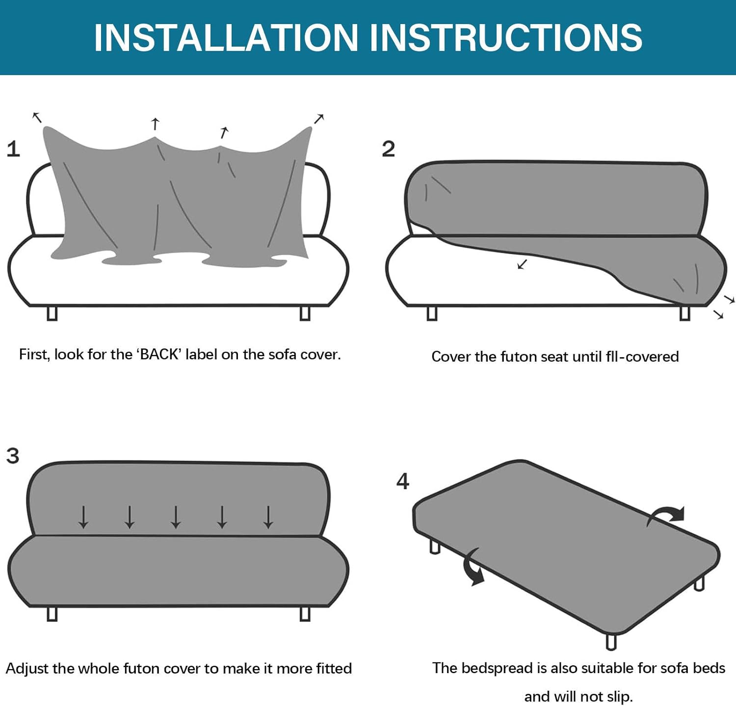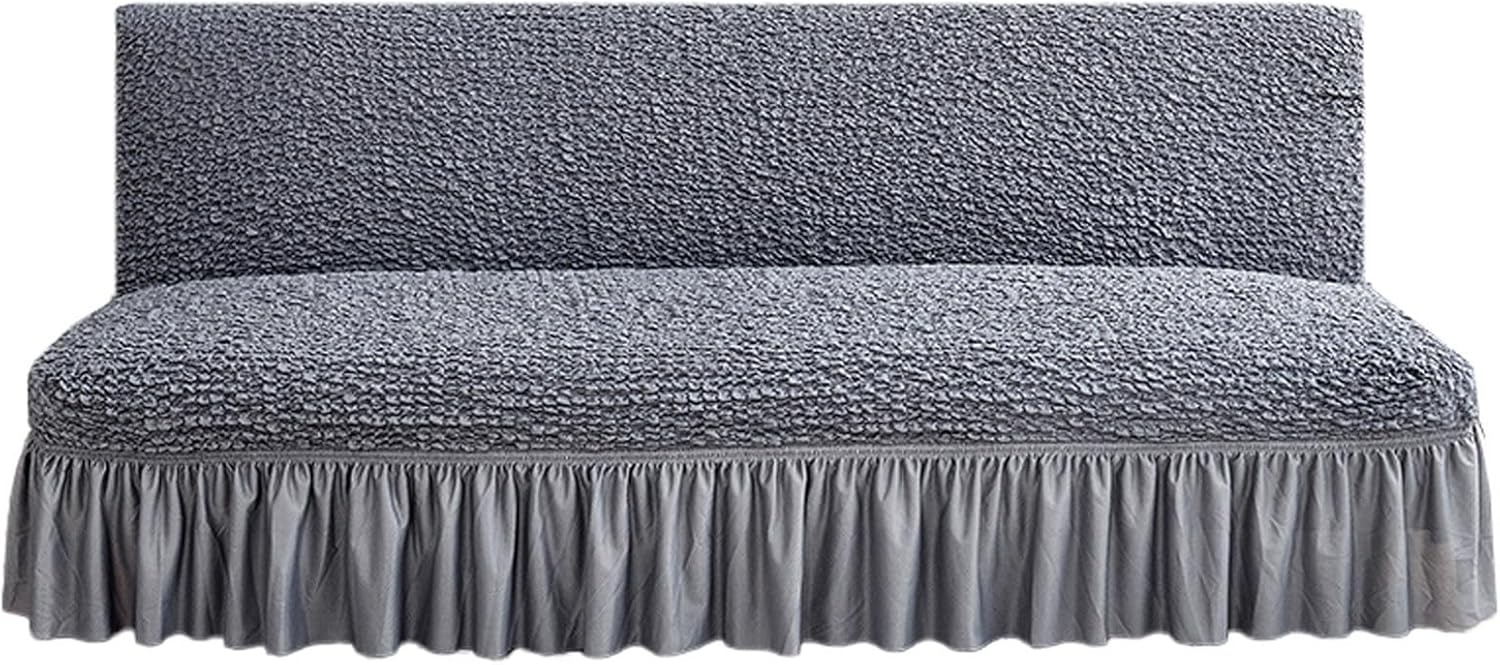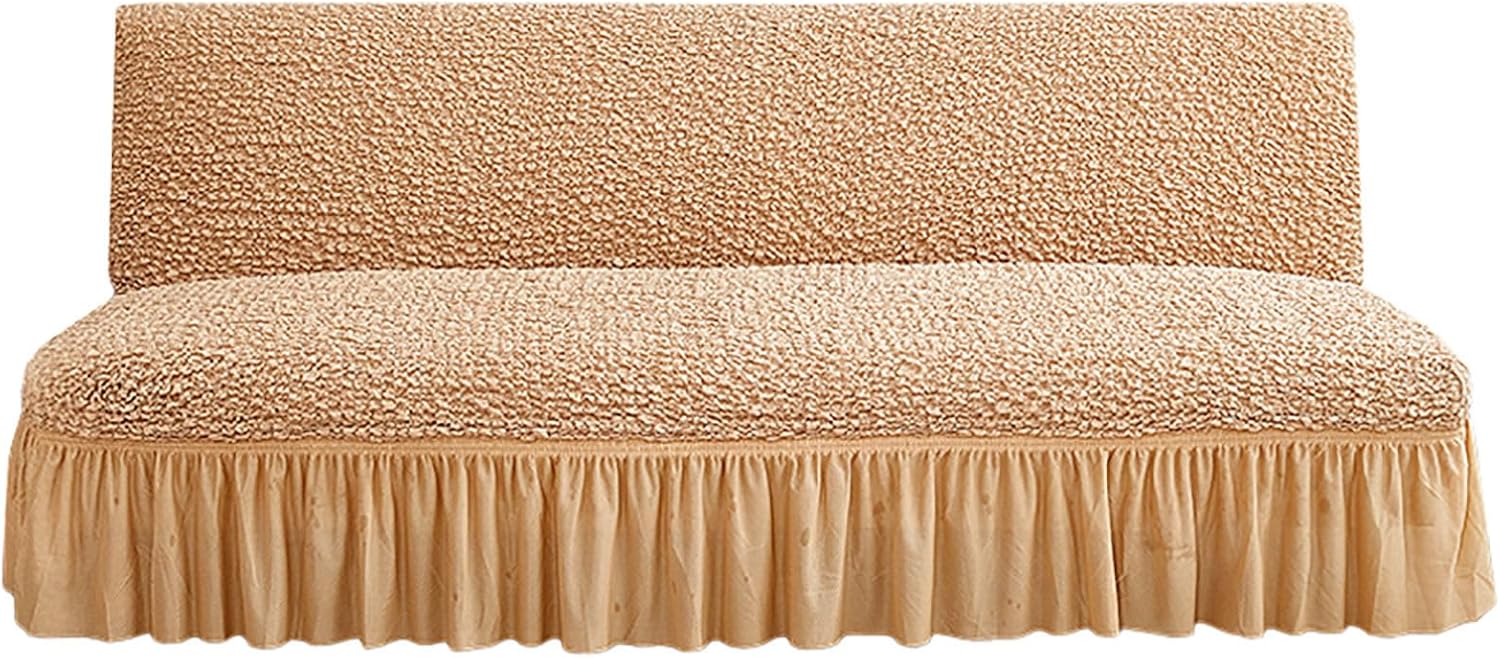 This furniture protector sofa slipcover with 360 degree all-cover design which can protect your armless sofa slipcover from spills, stains, wear and tear. Armless sofa slipcovers is a good ideal for renewing your old furniture and protecting your sofa.Material: 92% polyester and 8% spandexApplicable Sofa Size (approx.)Sofa length 160-190cm(63-74.8in)Sofa width: 40-60cm(15.7-23.6in)Backrest height: 40-60cm(15.7-23.6in)Sofa cushion thickness: 10-20cm(3.9-7.9in);Package Included:1 × Armless Futon CoverHighly stretch sofa cover to fit your folding sofa bed well and great decoration effect.The armless sofa slipcover can protect your furniture from wear and stains, extend the service life of the sofa and make your old furniture look new. The folding couch cover is a great choice for homes with pets.This high stretch sofa slipcovers come with elastic bands underneath which provide full coverage and protection for your futon. Easy to put on and take off.Note:This sofa cover is only suitable for the above-mentioned non-armrest sofa bed, please check the style and size of your sofa bed.Please allow 0.4-1.2" size differences due to manual measurement, and slipcover size should be slightly larger than the sofa size.Before you buy, please read our dimension chart carefully. Normally, the size of a sofa cover should be slightly larger than that of a sofa.The color of slipcover will be vary due to light and screen.