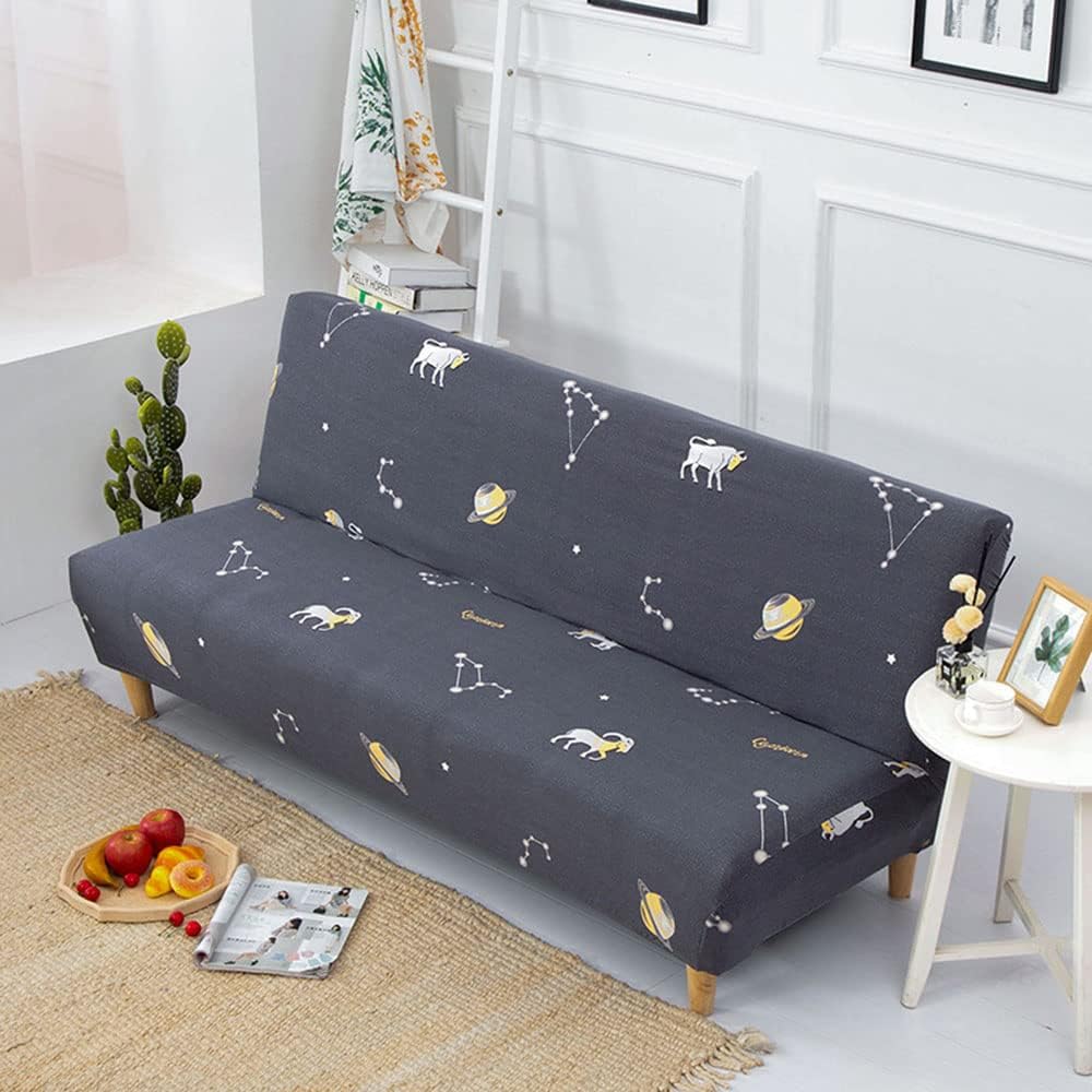 5% spandex+95% polyester, high-quality stretchy fabric, soft and comfortable.Our futon mattress cover protect your furniture from spills, stains, wear and tear, pet hair, dog cat footprint or damage.Not only functional to protect your old furniture, but also add elegance to your home decor. A decorative and protective item for your sofa bed.Feature one-size-fits-most:Small: 120-150cm/47-59 inch,Standard: 155-185cm/61-73 inch,large: 190-225cm/75-89 inch.Product name: Futon Cover:Material: 95% Polyester+5% SpandexPackage Content:1 x Futon CoverCouch futon slipcover making transforming your living room easier than ever! They not only protect your furniture, but it can also transform an old, worn-out couch into the stunning centerpiece of your room.Stylish and concise armless sofa cover have a wide range of applications, which permits its usage in different occasion, like families, restaurants, hotels, cafe, bar and other places needed.Machine washable in cold water. Wash separately at gentle cycle. Using mild laundry detergent. Do not bleach and iron.