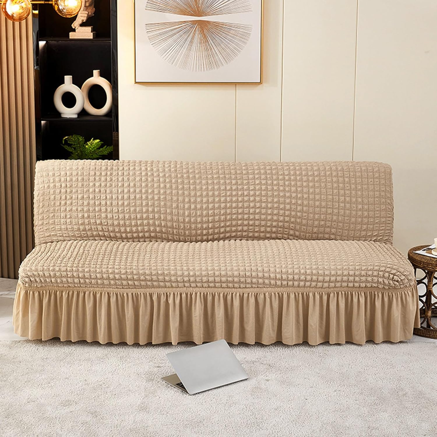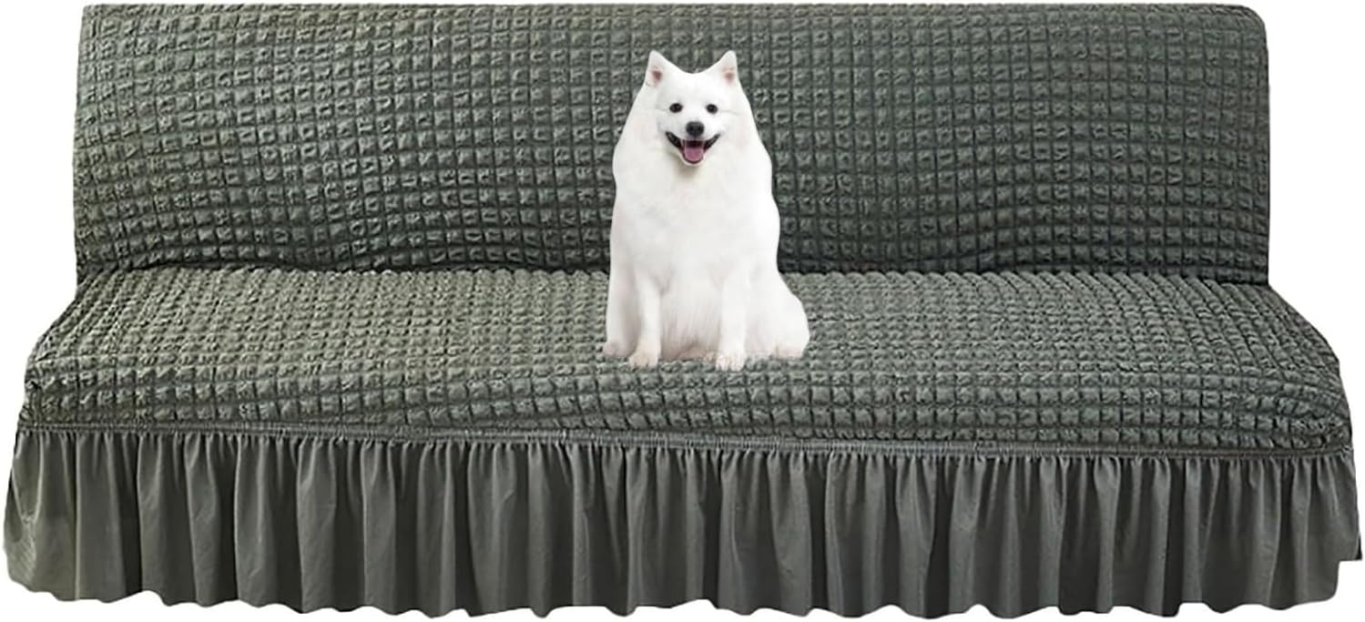 Our sofa bed covers can make your sofa bed a complete space, even covering the back of the sofa. The high elasticity fabric provides comprehensive protection for the sofa. Natural and environmentally friendly, it is a great choice for taking care of children and pets. Name: Armless Sofa Cover Fabric: Polyester and Spandex Color: Solid Color Measurement guide: Small size suitable for sofa length: 120-150cm/47.2-59.1inch Medium size suitable for sofa length: 160-190cm/63-74.8inch Large size suitable for sofa length: 190-210cm/74.8-82.7inch Packing list: 1 x Armless sofa cover Notes: There are slight differences between the image and the actual object caused by the brightness.