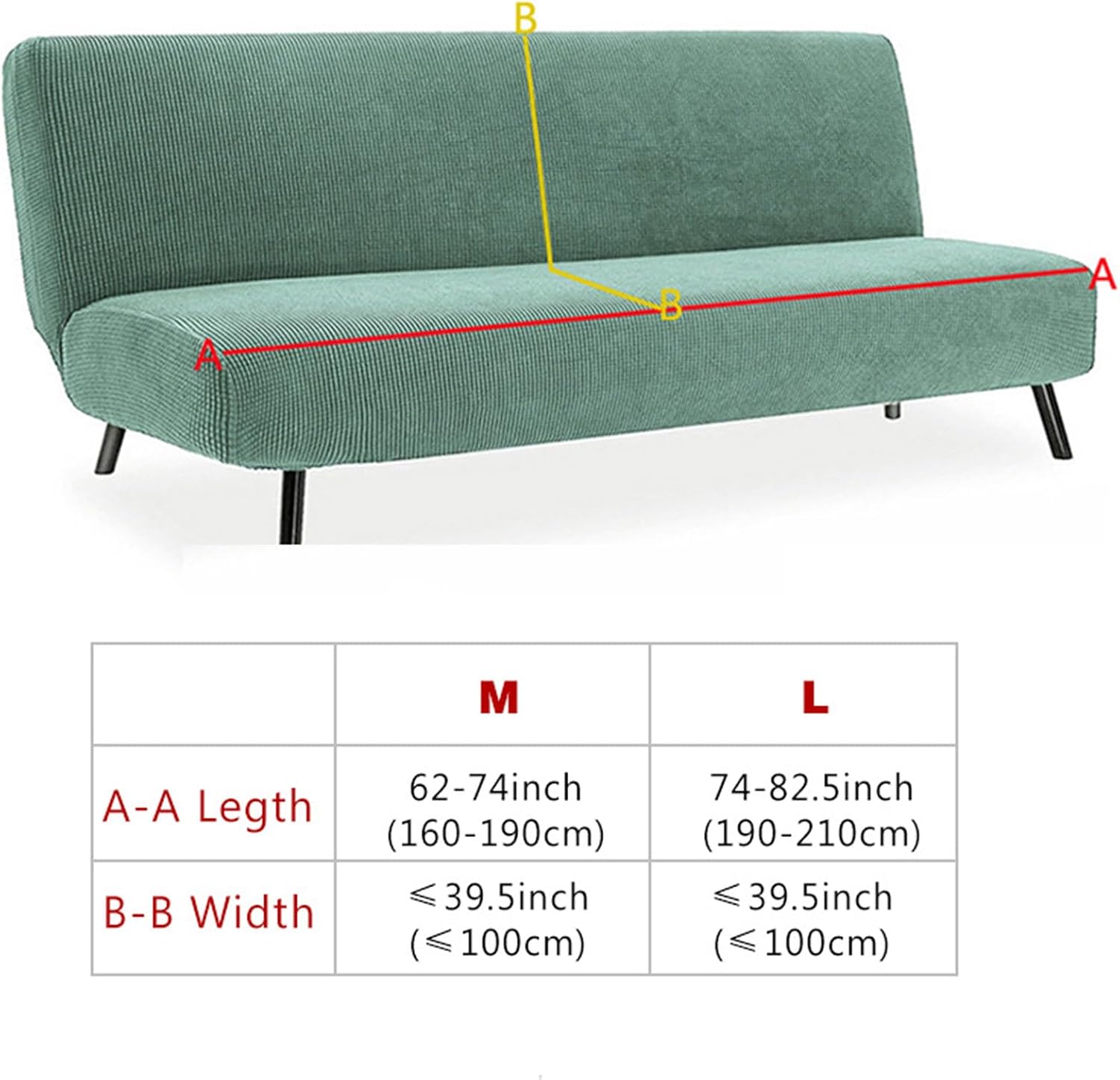 If you want to update your old sofa or protect your new sofa, just choose this futon cover without armrest, which can protect your furniture/sofa/couch/futon from stains, pet hair & any damage Product Specifications.Material: WaffleColor: Solid - Black, Blue, Beige, Brown, Khaki, Coffee, Dark Gray, Light Gray, RedStyle: Modern MinimalistCleaning: machine/hand wash Please measure the length of the armless sofa to choose the right sizeMedium: sofa bed length 160-190cm/62.99-74.8inLarge: sofa bed length 190-210cm/74.8-82.68in FeaturesWaterproof fabric to protect the sofaComfortable, durable, wrinkle-resistant and long-lasting Full elastic material, easy to install and remove360° full wrap, suitable for most sofa couch, non-slipPackage content: armless futon cover* 1pc