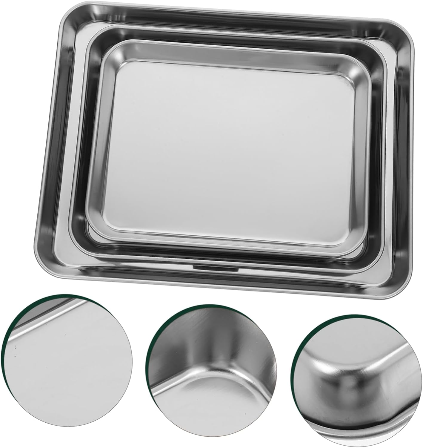 Package Include 1 x Toaster Oven Pan 23.5x17.5x2.5cm 1 x Toaster Oven Pan 26.5x20.5x2.5cm 1 x Toaster Oven Pan 31.5x24.5x2.5cm Characteristics -Size:23.50X17.50X2.50cm/9.24X6.88X0.98in -Size:31.50X24.50X2.50cm/12.38X9.63X0.98in -Size:26.50X20.50X2.50cm/10.41X8.06X0.98in - Widely-used:Suitable for barbecues, picnics, family gatherings, parties, camping, and many other occasions - Easy to Use: Great for baking cookies, roasts, grilled fish, fits most regular household ovens and small ovens -Material:430 stainless steel -Color:SilverGoods DescriptionCrafted from 430 stainless steel, this 3-piece set of toaster baking trays offers smooth surfaces and rolled edges designed for compact toaster ovens. The pans provide a practical size range that fits most ovens, making them suitable for baking cookies, lasagna, pot roasts, and grilled vegetables. Their nonstick quality simplifies food release and cleaning, while the sturdy construction supports frequent use. Whether preparing family meals or outdoor gatherings like barbecues and picnics, these versatile baking sheets enhance your cooking experience. The straightforward design focuses on ease of use and performance, making them a reliable addition to your kitchen cookware collection From Healifty was created to bring functional and thoughtfully designed kitchenware to everyday cooks. Our stainless steel toaster oven pans embody durability and convenience, helping families enjoy cooking and sharing meals. enhancing daily moments with practical tools that support your culinary journey. Cook smart, live well with Healifty