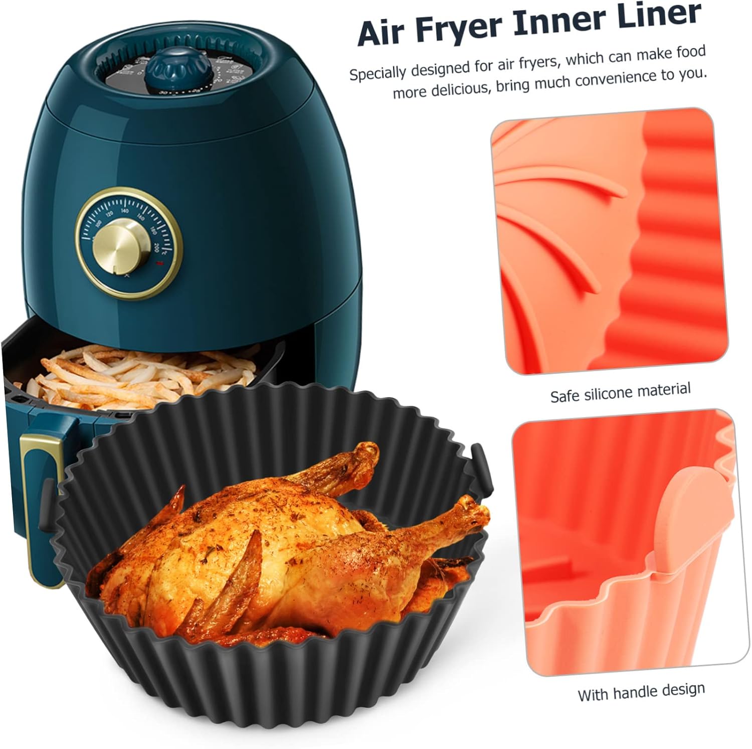 HyKabPackage List 2 x Air Fryer Silicone LinersFeatures - Reliable to use: Can directly touch the food, without sticky and burned residue, you can better enjoy healthy and delicious foods by these liners reusable.- Reasonable structure: Suitable size and height, you can place your food very well, without worrying it will fall out silicone baking dish.-Color:grey, orange air fryer silicone tray.-Material:silicone air fryer accessories.- Safe materials: Adopting silicone materials, these baking liners are light weight, safe and practical for term using silicone pot for air fryer.- Good compatibility: Widely applied for most air fryers, can also be in oven, microwave or pressure cooker and more non-stick air fryer pot.-Size:20.00X20.00X6.40cm/7.86X7.86X2 silicone pot liner.- Wide application: Suitable for outdoor picnic, hiking, barbecue and other occasions, can be as a small fruit bowl or container air fryer silicone baking tray.Goods Informationsilicone filter pad Wide range of applications, suitable for home baking, camping, grilling, parties and more places to better satisfy your requirements.air fryer sheets liners Convenient and reusable, light, non-sticky and - , easy to use and can keep the integrity of food.oven baking pan If you still looking for some practical and durable liners for your air fryer, then our product can be your unmissable choice