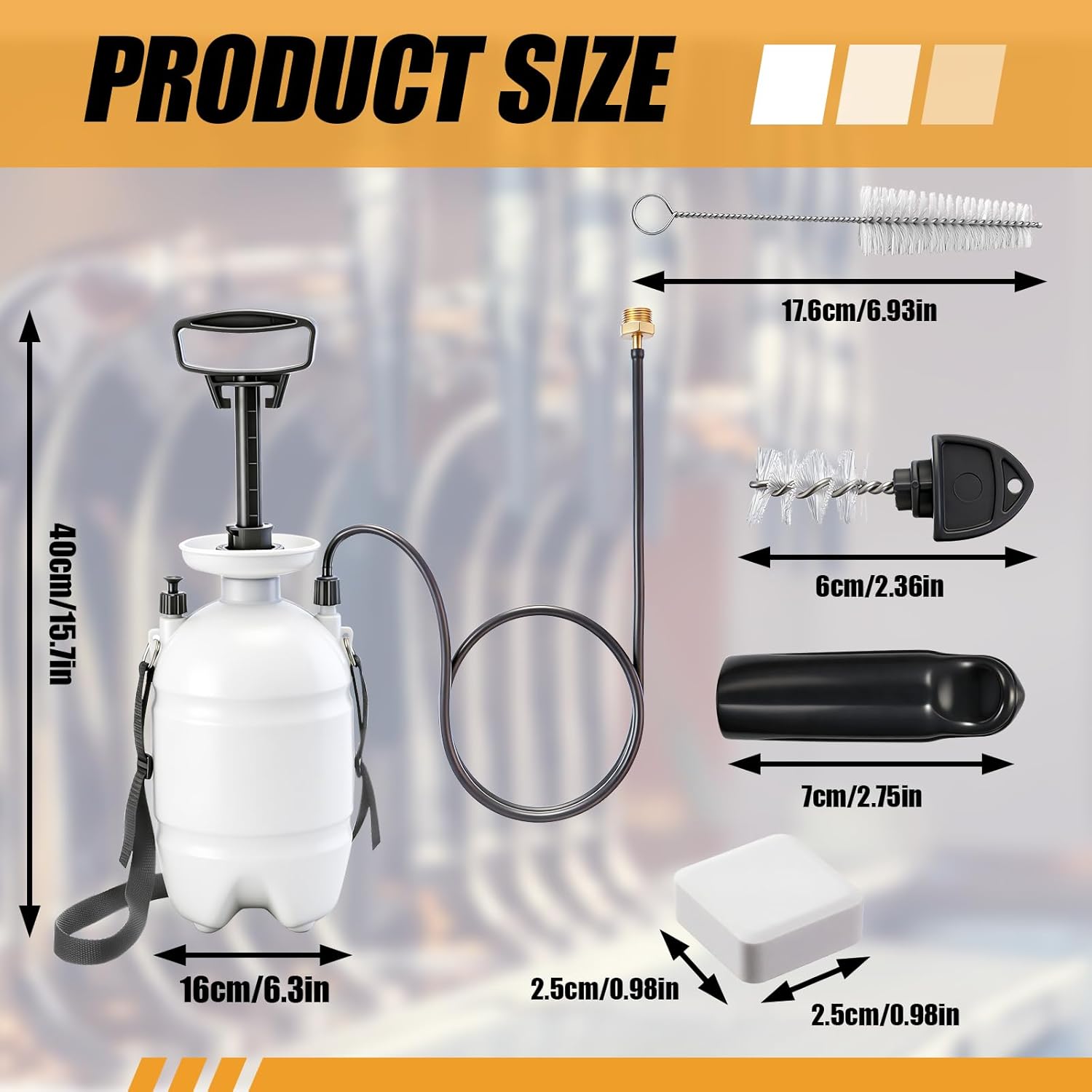 Features: Whether it's for a small home gathering or a busy pub environment, this cleaning kit meets diverse cleaning needs, effortlessly adapting to any setting, from homes to breweries, making it the keg taps system cleaning kit. Say goodbye to complicated disassembly with our keg line cleaning kit. Connect directly to the beer hose for quick cleans, preventing any risk of damage to your equipment, an ideal feature for any diligent kegerator accessories owner. . Specifications: Material: plastic and stainless steel Color: white Size: about 4 L/ 1 Gallon Package includes: 1 x Hand pump pressurized beer machine 1 x Faucet plug 2 x Faucet cleaning brush 10 x Cleaning tablets Notes: Manual measurement, please allow slight errors on size. The color may have a slight difference due to different screen displays Small parts included, please keep them away from kids to avoid swallowing risk