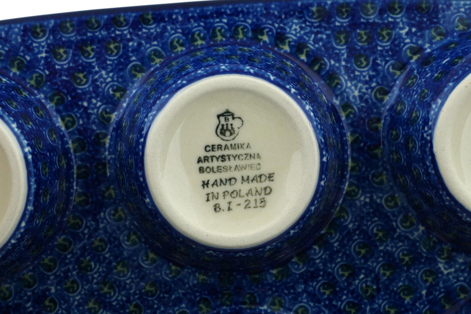 Genuine Polish Pottery handmade in Boleslawiec, Poland. Region celebrated for its long-standing ceramic tradition and artisanal craftsmanship.This authentic, hand-painted Polish stoneware Muffin Pan in the Blue Poppies pattern is handcrafted by Ceramika Artystyczna using traditional hand-painting and high-temperature firing techniques for lasting durability and everyday functionality.Certificate of Authenticity:Includes an official certificate verifying the handmade origin and authenticity of the piece.Care Instructions:Your order includes care instructions and helpful information, especially useful when gifting Polish Pottery.Dimensions:1.4" high, 8" wide, 11.5" long (max outside edge or handle).Capacity: 17 oz (filled to the rim).Certified Polmedia Polish Pottery Features:* Lead & Cadmium Free: Safe for everyday use.* Microwave Safe: Heat food or drinks with confidence.* Dishwasher Safe: Pattern will not fade.* Oven Safe (up to 480F): Excellent for baking and reheating.* Freezer Safe: High-fired stoneware handles temperature changes.* Chip & Scratch Resistant: Durable for daily use.* Hand-Painted Artistry: Decorated by skilled artisans.* Never-Fade Colors: Patterns remain vibrant forever.The Essence of Polish Pottery:For generations, artisans in Boleslawiec have crafted stoneware valued for durability, heat distribution, and long-lasting beauty. This tradition continues today in every piece of Polish Pottery.