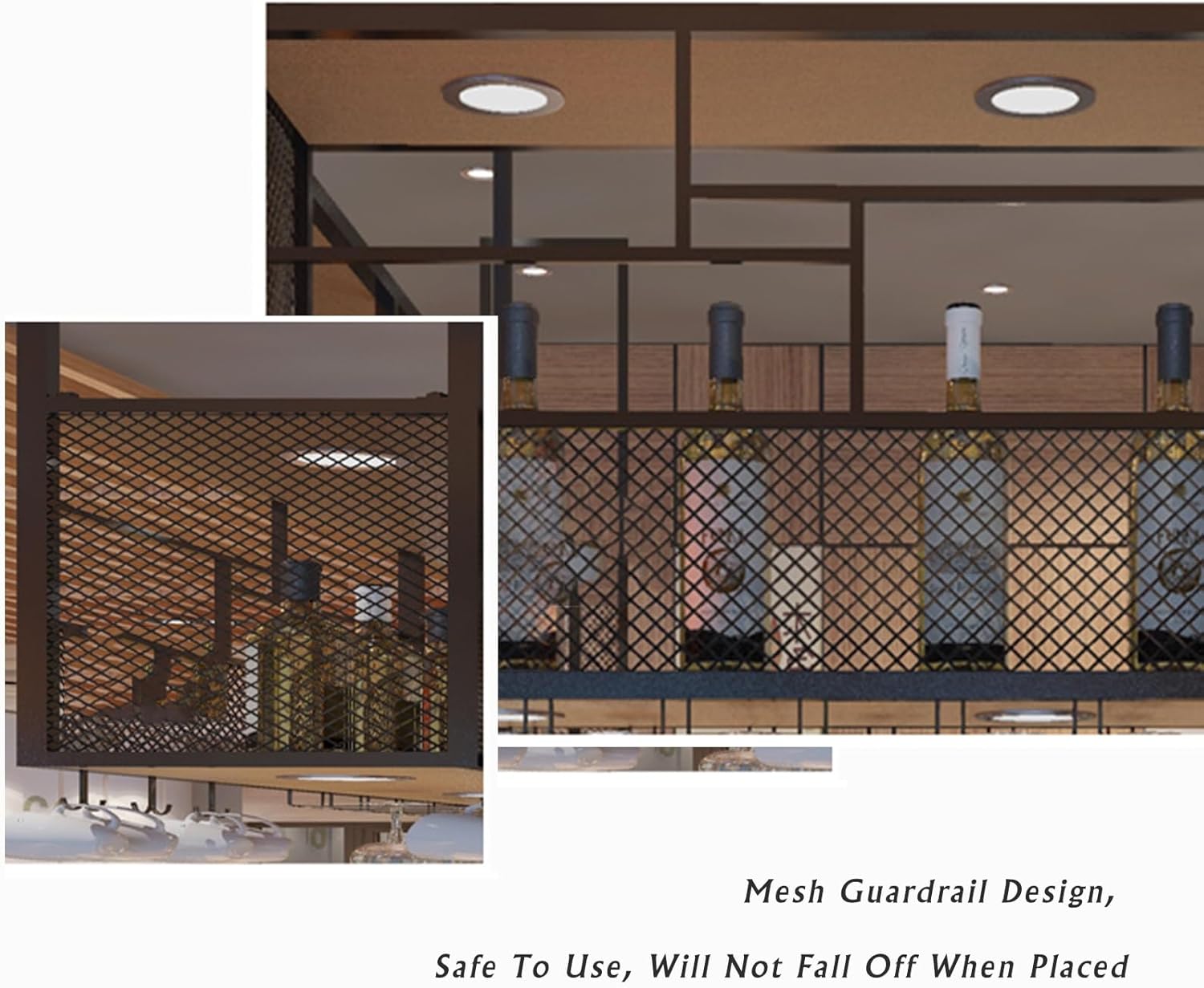 DESCRIPTION:If you are a wine lover, you definitely a wine rack that can both store your collection and display beautiful glasses. This ceiling wine glass rack fulfills that desire. 1. Load Capacity: Our rack is to hold a large number of wine glasses securely, so you can confidently display your collection.2. Universal Goblet Holder: The rack accommodates various types and sizes of wine glasses, making it a versatile choice for any wine-lover.3. Easy to Install: With our user-friendly design, installation is a breeze. Simply follow the provided instructions and use the included mounting accessories for a hassle-free setup.4. Wide Application: This rack is perfect for numerous settings, from intimate family gatherings to bustling wine-tasting events.PRODUCT SPECIFICATIONS:Name: wine rackMaterial: IronColor: BlackFunction: LiftableAssembly Required: YesFeatures: heavy-duty, durableSize: length 100/120cm, Width 30cmPACKAGE INCLUDES:1 x Ceiling wine rack1 x Mounting accessories and user's GuideNOTES:1.This product is not suitable for plasterboard ceilings as plasterboard does not have enough load-bearing capacity. Customers whose ceilings are cement board or wood board, please buy it with confidence.2.This product does not include wine glasses and other decorations.3.Please allow the slight color difference caused by the shooting light and the 1-3 cm error due to manual measurement, and make sure you do not mind before ordering.NOTICE:If You Have Any Questions, Please Contact Us And We Will Provide A Satisfactory Solution Within 24 Hours