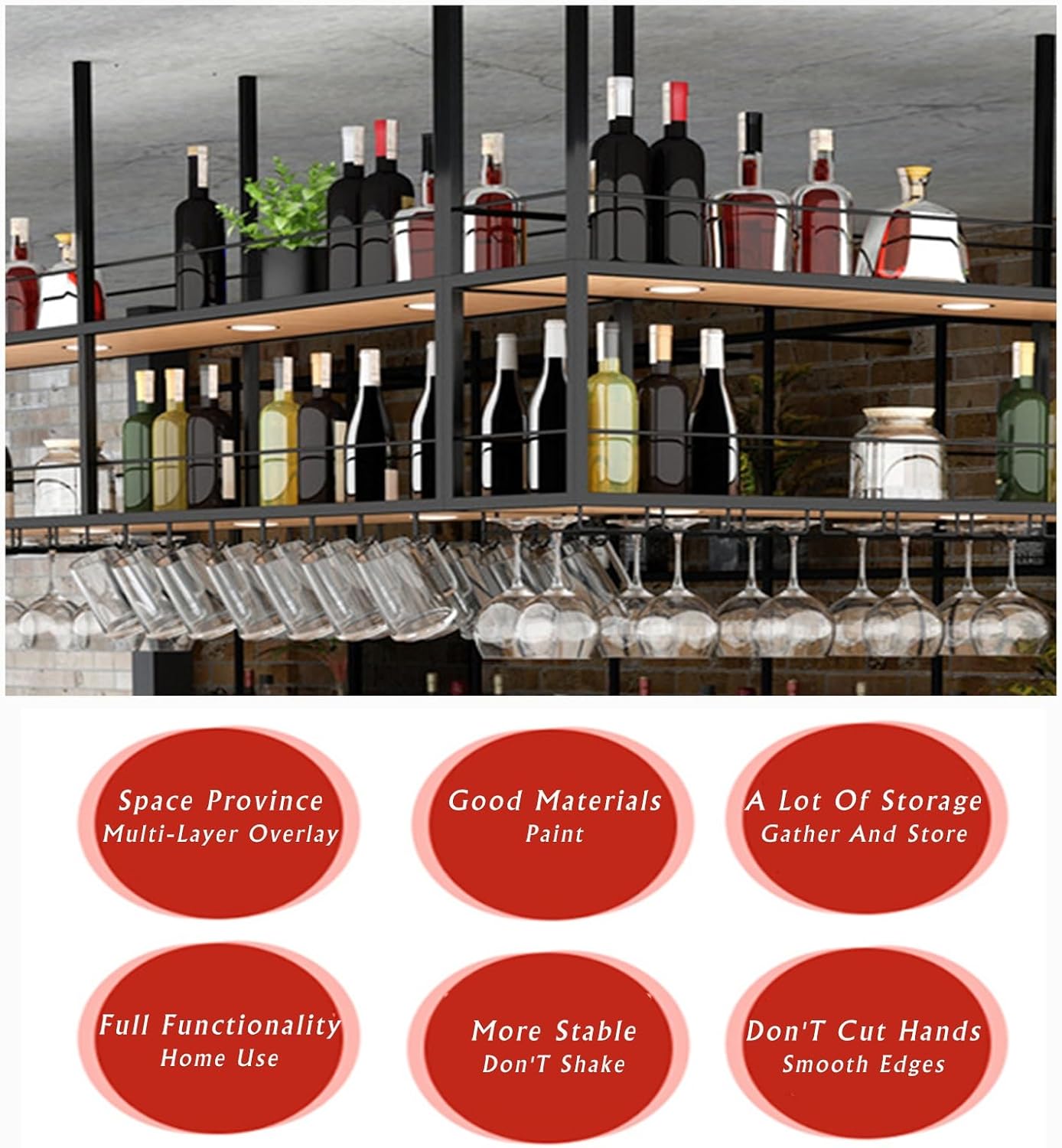 DESCRIPTION:If you are a wine lover, you definitely a wine rack that can both store your collection and display beautiful glasses. This ceiling wine glass rack fulfills that desire. 1. Load Capacity: Our rack is to hold a large number of wine glasses securely, so you can confidently display your collection.2. Universal Goblet Holder: The rack accommodates various types and sizes of wine glasses, making it a versatile choice for any wine-lover.3. Easy to Install: With our user-friendly design, installation is a breeze. Simply follow the provided instructions and use the included mounting accessories for a hassle-free setup.4. Wide Application: This rack is perfect for numerous settings, from intimate family gatherings to bustling wine-tasting events.PRODUCT SPECIFICATIONS:Name: wine rackMaterial: metalColor: BlackFunction: LiftableAssembly Required: YesFeatures: heavy-duty, durableSize: length 100/120cm, Width 30cmPACKAGE INCLUDES:1 x Ceiling wine rack1 x Mounting accessories and user's GuideNOTES:1.This product is not suitable for plasterboard ceilings as plasterboard does not have enough load-bearing capacity. Customers whose ceilings are cement board or wood board, please buy it with confidence.2.This product does not include wine glasses and other decorations.3.Please allow the slight color difference caused by the shooting light and the 1-3 cm error due to manual measurement, and make sure you do not mind before ordering.NOTICE:If You Have Any Questions, Please Contact Us And We Will Provide A Satisfactory Solution Within 24 Hours