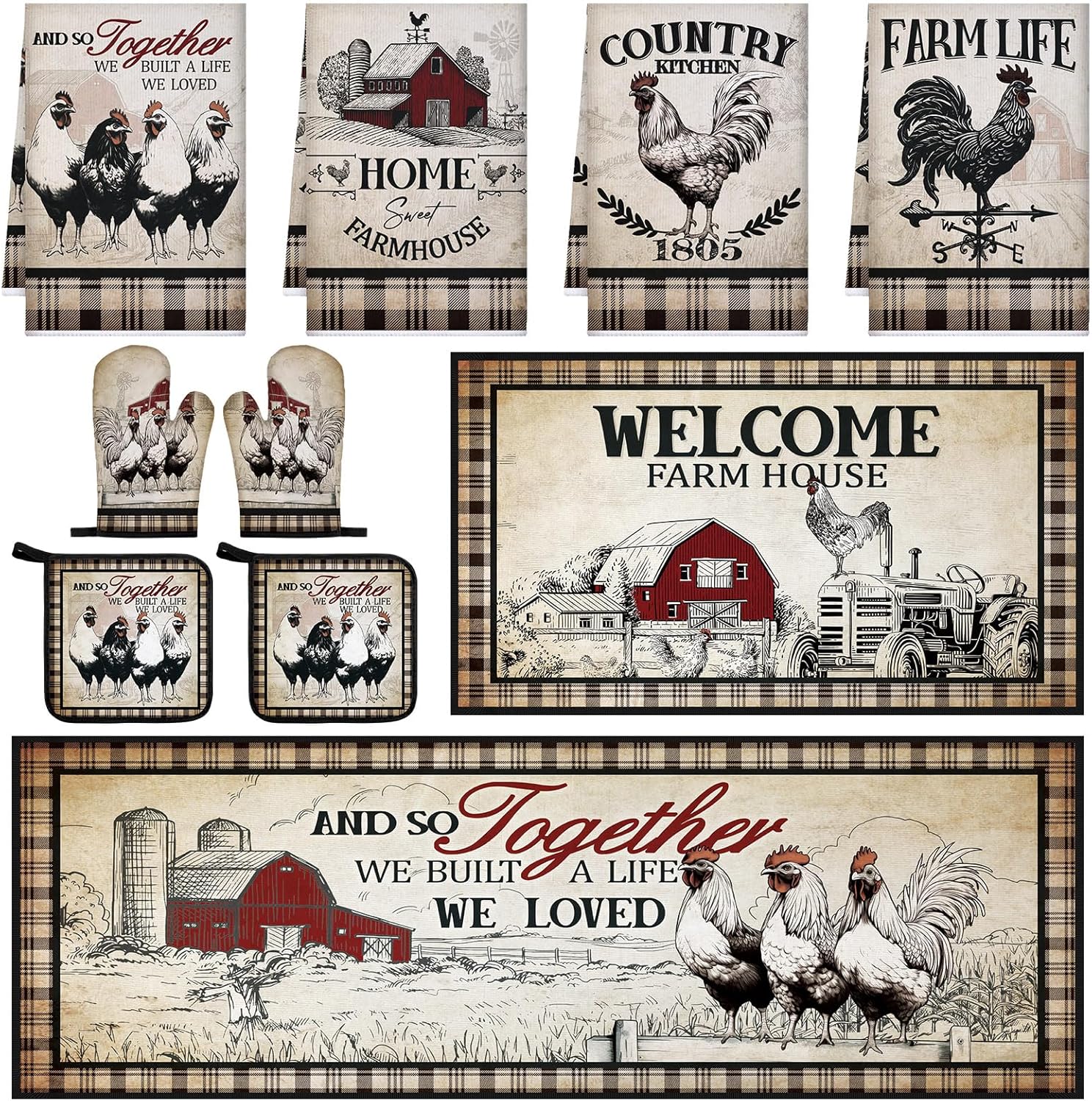 Features: Trusted material: The kitchen decoration set is made of reliable materials that not only ensure long lasting utility, but also reassure the customers about the hygiene of their kitchen space and the safety of their utensil handling process. Intricate features: The farmhouse rugs set possesses several unique traits that make it a standout selection for your kitchen. With its ideal combination of products, proper size, rustic pattern design, and wide application potential, it is a remarkable set blending pragmatism and aesthetics in an ideal manner. Specifications: Material: Kitchen towels: microfiber Kitchen rugs: polyester Pot holders: polyester, thermal insulation foam Oven mitts: polyester, thermal insulation foam, non-woven fabric Size: Kitchen towels: 15.75 x 23.62 inches / 40 x 60 cm Kitchen rugs: 31.5 x 19.69 inches / 80 x 50 cm, 47.24 x 19.69 inches / 120 x 50 cm Pot holders: 7.09 x 7.09 inches / 18 x 18 cm Oven mitts: 6.69 x 10.63 inches / 17 x 27 cm Color: rustic color Package includes: 4 x Kitchen towels 2 x Rustic kitchen rugs 2 x Pot holders 2 x Oven mitt Notes: Manual measurement, please allow slight errors on size. The color may exist a slight difference due to different screen displays.