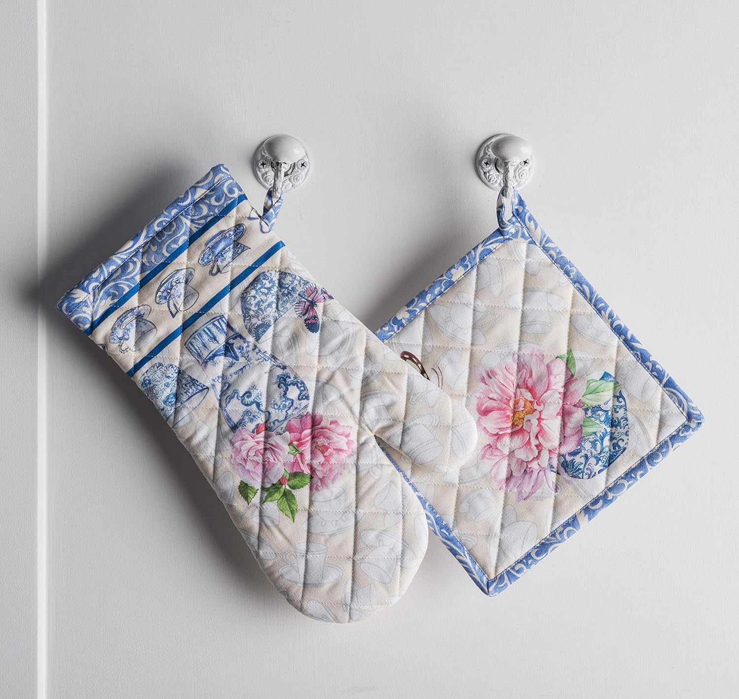 About the Product: This Maison d’ Hermine Canton kitchen bundle set brings lovely charm to your home décor with comfortable cotton products that provide a light but cozy feel that’s perfect throughout the year. Beautiful hand painting captures the essence of the original design, while the 100% cotton offers a wonderful drape, soft feel and polished charm making our products a great choice to entertain family and friends for all occasions. About the Collection : This delicate collection is inspired by the beautiful town of Colmar, in the Northeast of France - also known as 'Little Venice. With its ancient houses and flower decked town centre, this land of wines is idyllic. The 'Colmar' collection for 'Maison d' Hermine' captures the essence of this picturesque place with its dainty flower prints that glide on white cotton fabric.About the Brand: Maison d’ Hermine is a one-stop destination for people wanting a well-curated collection of charming and sophisticated table & kitchen linen.Designed to add an authentic European touch to your home, each collection is a work in art itself with intriguing details, artistic patterns, wonderful textures and rich colors. From modern themes to timeless classics each design is meticulously hand painted in water color and then expertly crafted down to the last detail on fabric with print. We pride ourselves on the stylish and practical choices we offer which are devoted to bring you products that inject color and character to your home.