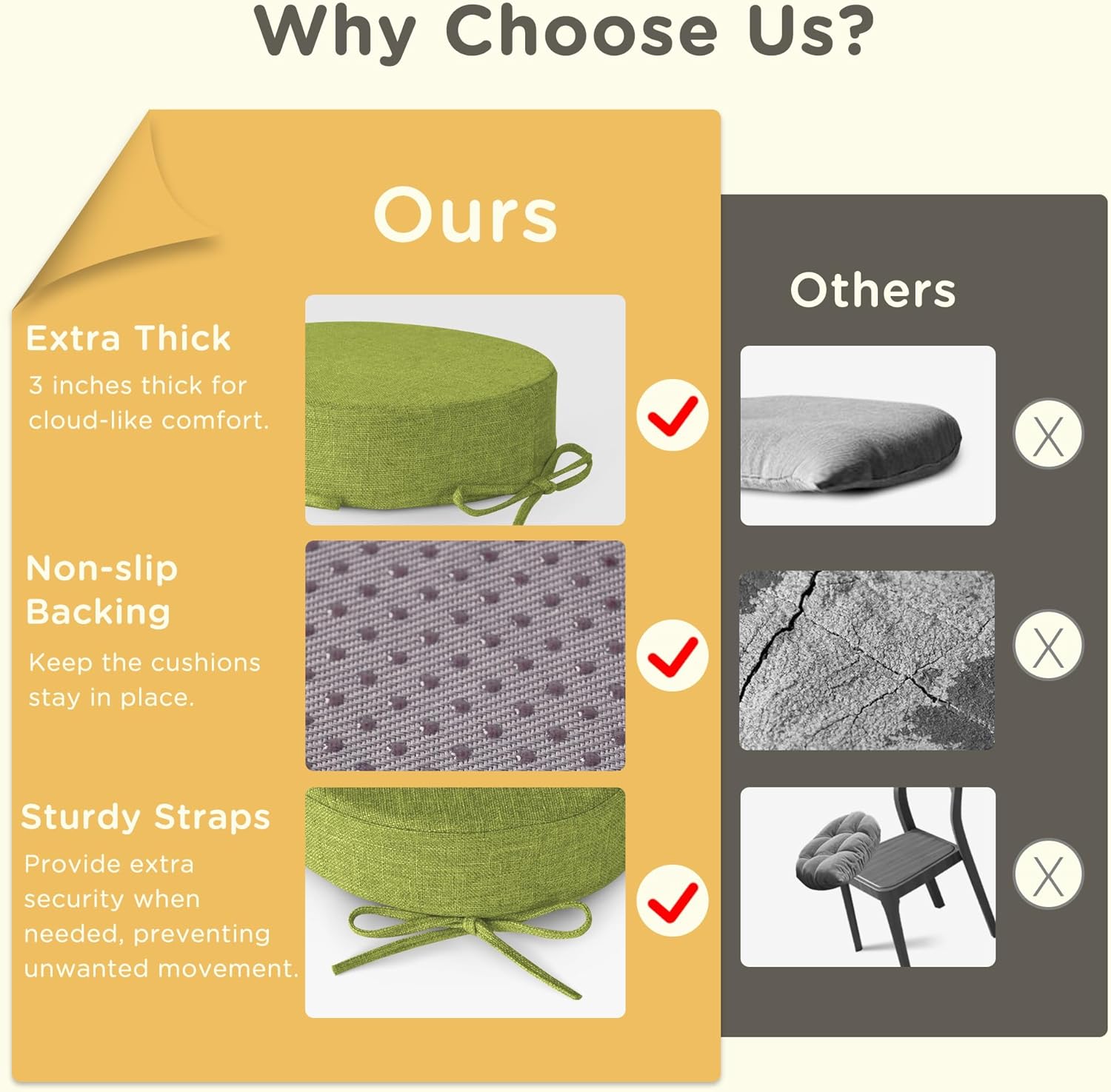 The MineCozy indoor chair cushions are crafted to deliver exceptional comfort, while also adding a hint of sophistication to bar or bistro. Key Features: High-Quality Material & Stuffing: Made with a 100% polyester cover and filled with premium cotton for unmatched softness and longevity. Versatile Fit: These cushions measure 12" x 12" x 3" and are designed to fit snugly on a wide range of chairs, making them an ideal complement to your seating setup. Easy Maintenance: Keeping them clean is hassle-free – just wipe them down with a damp cloth and let them air dry. After unpacking, lightly press and tap them to restore their original fluffy shape and comfort. Enhance Your Dining Enjoyment: The MineCozy Indoor Chair Cushions blend comfort with style, elevating your dining experience to new heights.