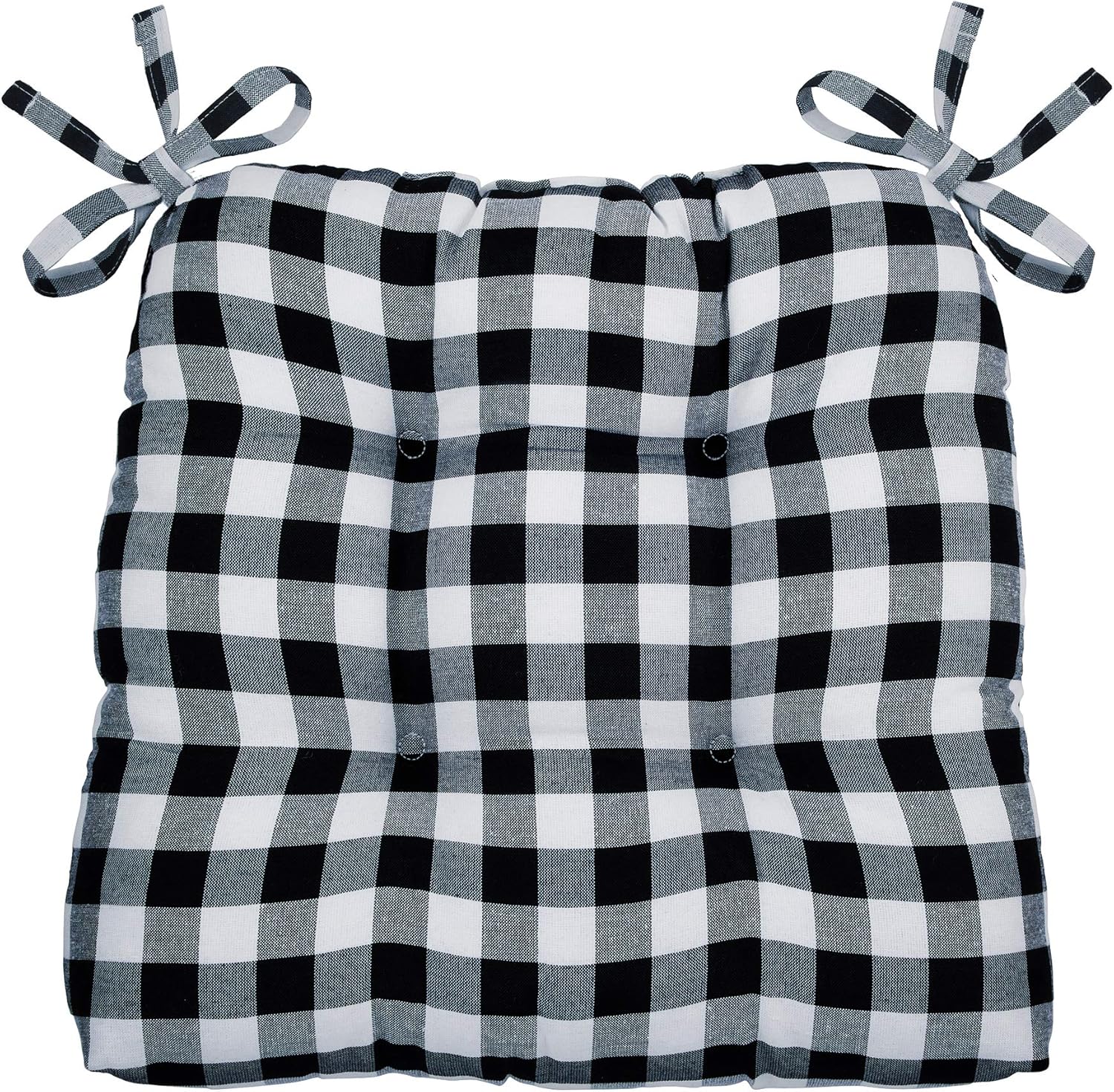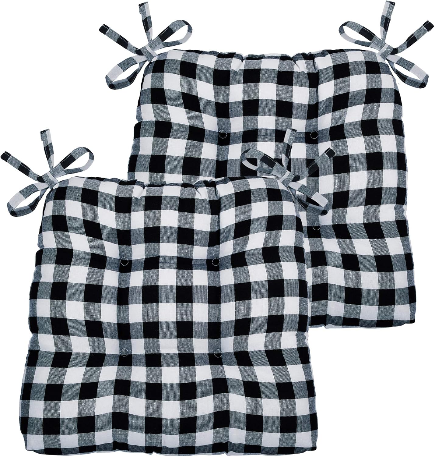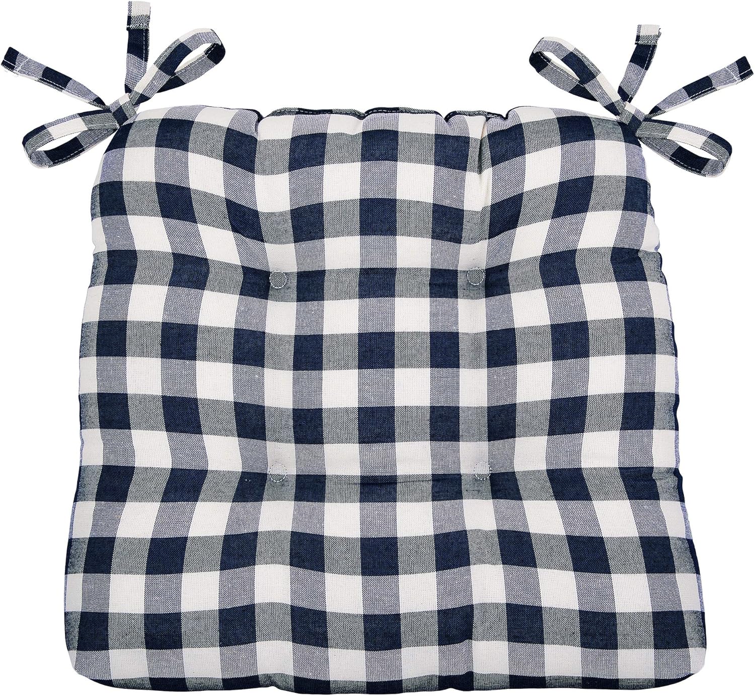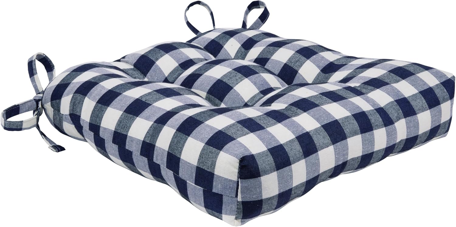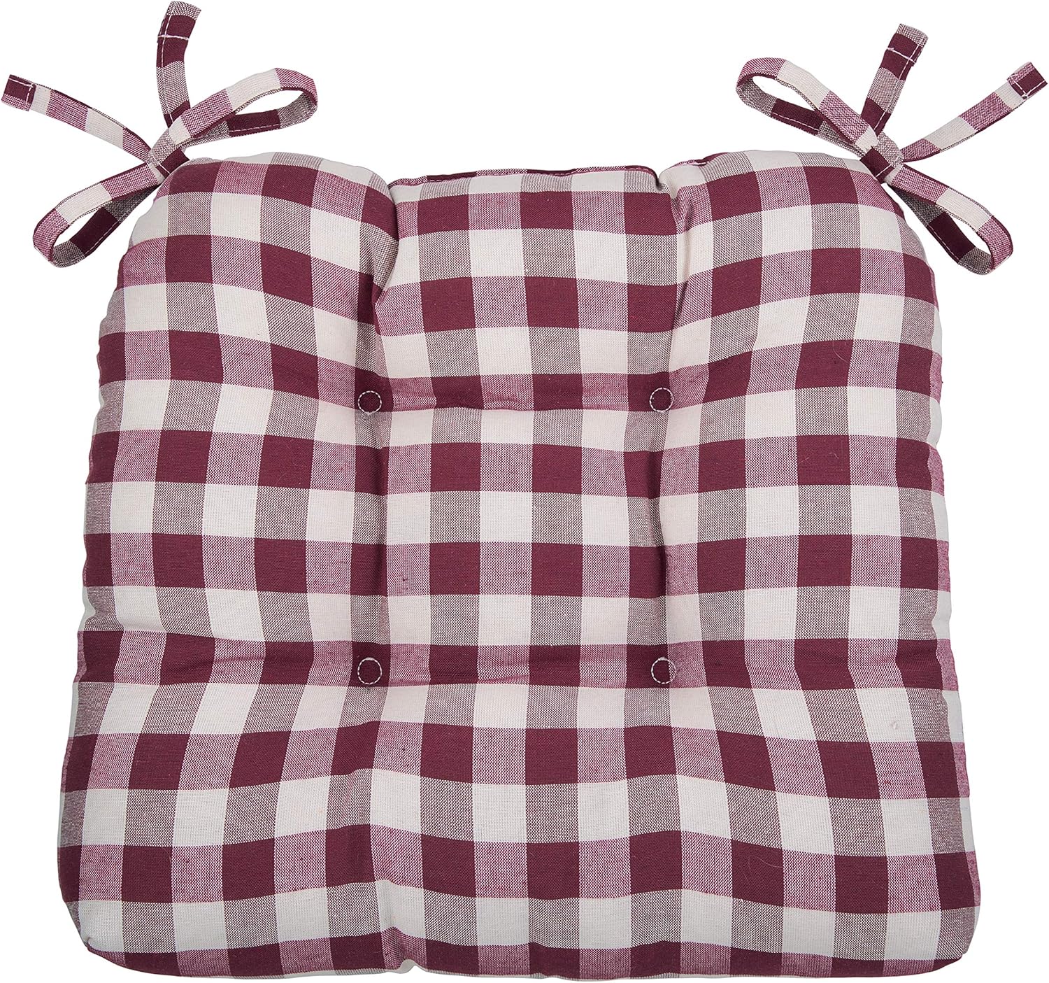 Add these timeless designed plaid checkered chair cushions pads to any chair for an instant upgrade to your seating comfort. Each cushion come with tear proof ties and a triple stitched hem to ensure that they will never come off. Available in 6 vibrant country farmhouse themed colors to match any home decor motif. Over filled and contoured on the ends to fit all chairs. Ready to use right out of the packaging. Spot clean and hang to dry. Also available in multi packs to suit all your dining needs.