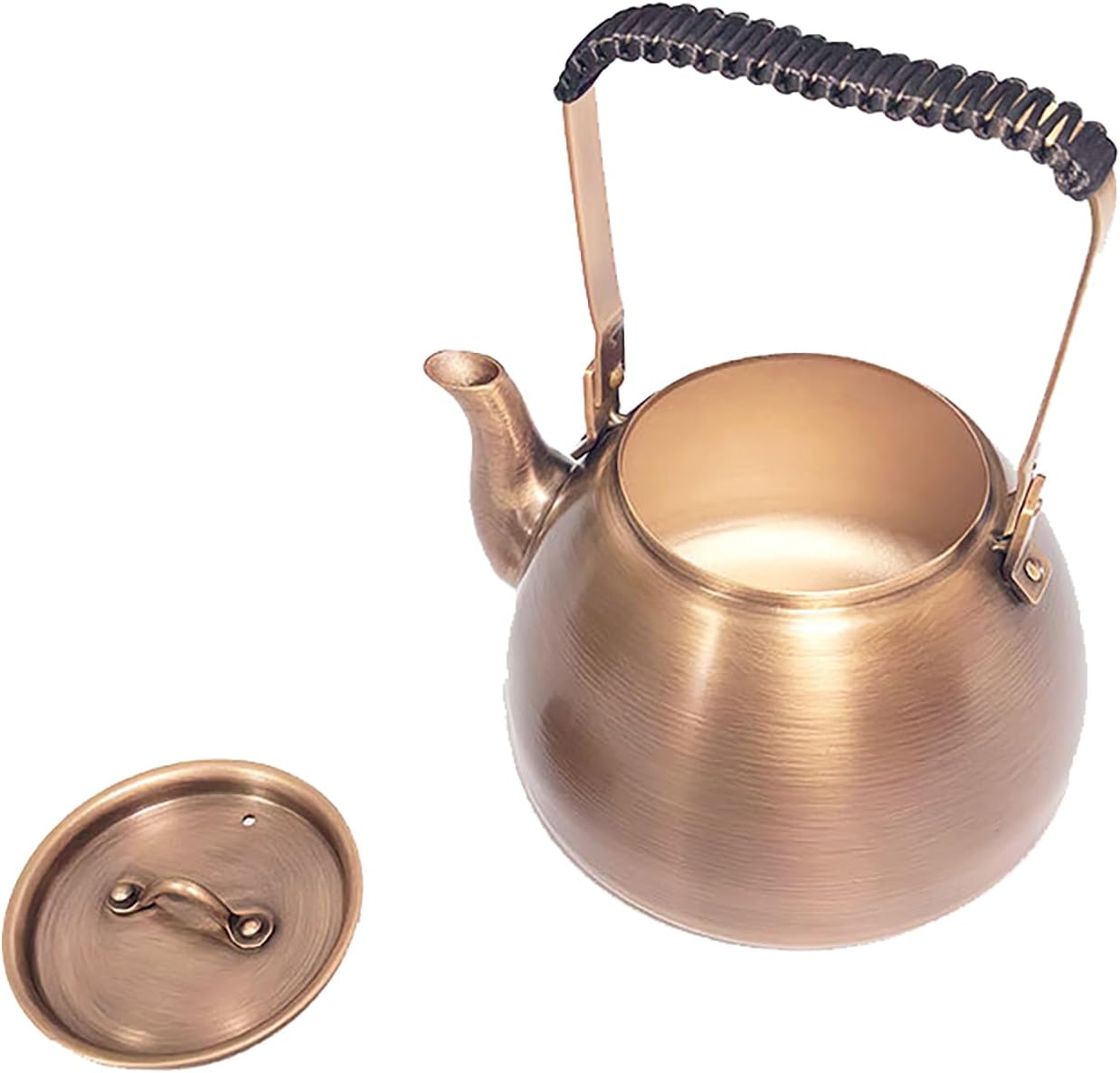 Copper kettles can be heated over an open flame, have good heat retention, and a boiling point sufficient to reach 100°C.Copper kettles can release some copper, improving the taste of the water.Product Name: Copper TeapotProduct Material: 99.9% CopperWater Filling: No more than 70% fullCopper Thickness: 1.2mmInstructions for use: 1. After receiving the copper kettle, boil tea leaves in water two or three times, then discard the water. Once the patina inside has oxidized, the seasoning process is complete.2. The tea leaves may mold and need to be removed. The oxidized patina layer does not need to be cleaned or removed; it is insoluble in water, beneficial and harmless. Continue to use it normally with confidence.
